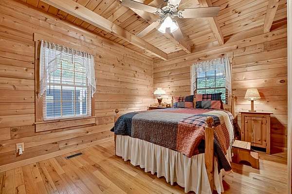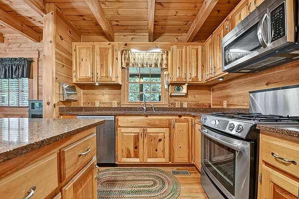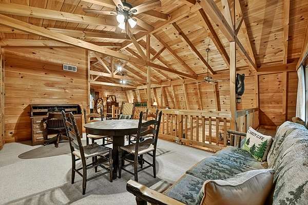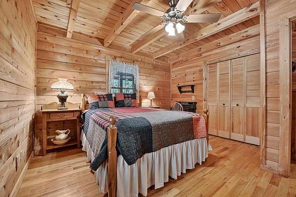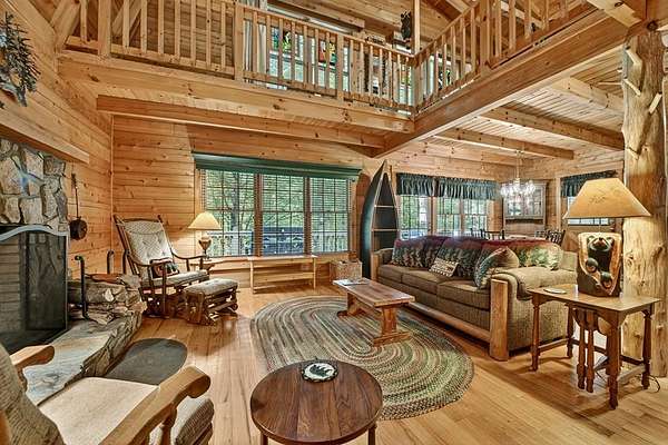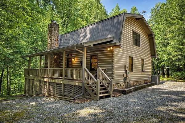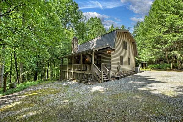 Some properties are simply rare--and this is one of them! Set on 5.62 Park-Like ACRES with frontage on BOTH sides of Oliver CREEK, this fireside log home feels more like a private nature preserve than a home, surrounded by hemlocks and wild ferns with the soothing sound of rushing rapids that you can see and hear from the full-length covered porch and screened porch. The backyard offers a true retreat, complete with a firepit and picnic area--like your own private campsite in the forest. This 3BR/2BA log home (with a spa bath) has been meticulously maintained, never used as a rental, and is being sold fully furnished for true move-in readiness. The great room features a wood-burning fireplace, complemented by two additional wood stoves, while the kitchen offers silestone countertops and stainless appliances, and multiple living spaces including a loft sitting/game area and a finished basement family room provide flexibility for entertaining and relaxing. The oversized primary suite is upstairs, with two bedrooms on the main level. Additional highlights include a metal roof, private well, FIBER internet, Generac generator, electric car charger, laundry hookups on both levels, covered parking for three vehicles, and ample parking for boats, campers, UTVs, and outdoor toys. With no HOA, no restrictions, and short-term rentals allowed, this property offers exceptional flexibility for full-time living, a second home, or an income-producing retreat. And you can rest knowing this home sits above the creek and has never flooded. *Some homes speak to the soul the moment you arrive--this is one of them, and it must be experienced in person to truly appreciate how special it is.*