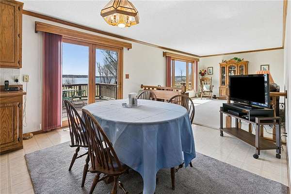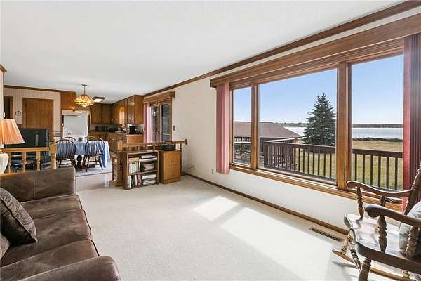 PRO PHOTOS COMING SOON. A year-round lakeshore rambler on a wonderful, level lot, with 150' of sandy shoreline and bordered by Sugar Bush Creek, is available for Summer 2026. Southwest facing with tons of hot sun for enjoying lake activities. Enjoy the panoramic lake views from the deck that expands the length of the home. Walk-outs from main dining room and lower level expand living spaces from Spring to Fall.