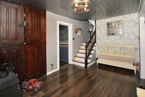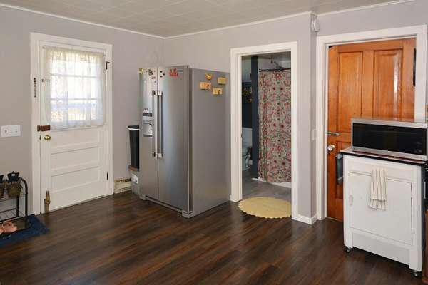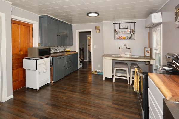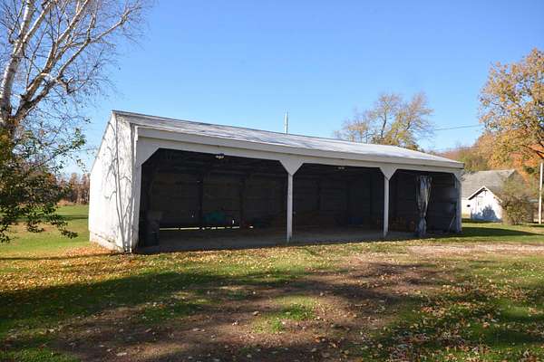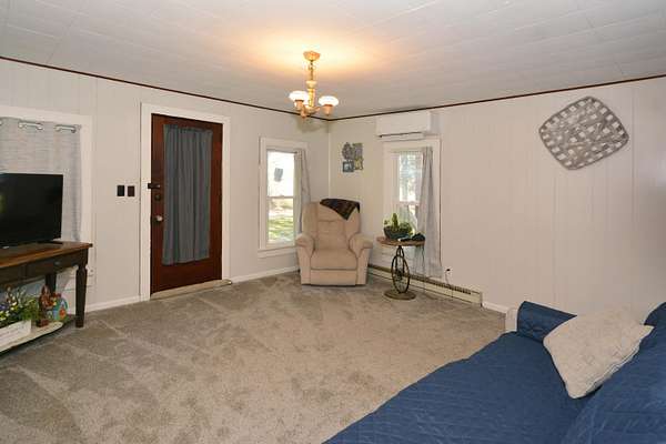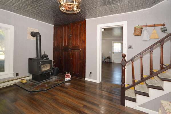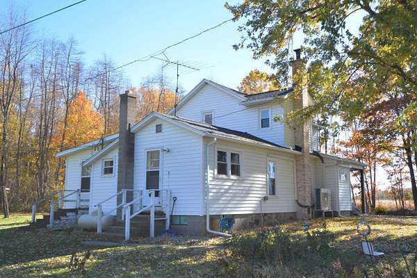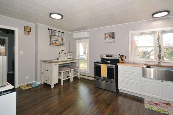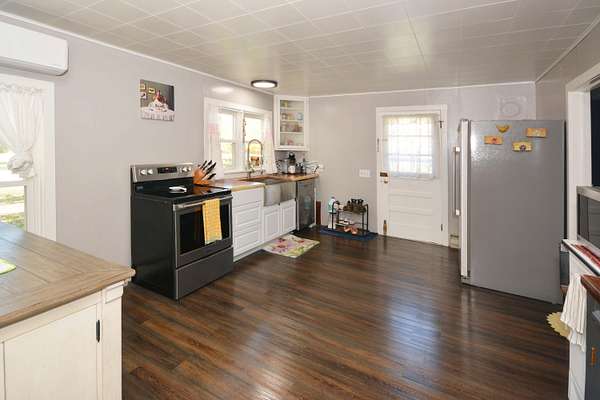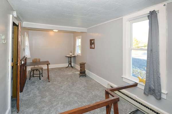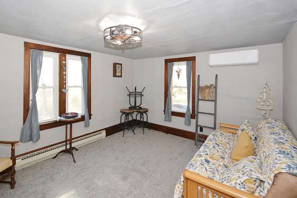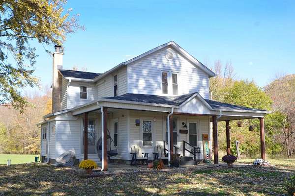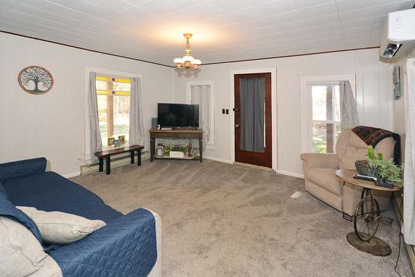 Beautifully renovated farm house on 3 quiet, gorgeous acres in the country! If you're looking for a perfect balance of modern convenience and old charm this is it! Enter through the back door to immediately discover a large kitchen with new cabinets, stunning wood tops, farm sink and appliances (2023) Don't miss the bank of original wall cabinets perfectly preserved. Enter through the covered porch in front, your eye is drawn to the light coming through the stained glass window in the living room. The main floor offers full bath (2023) and primary bedroom. Don't miss the modern and adorable laundry room and huge closet! The wood stove in the center of the home (2023) is cozy and provides warmth. Upstairs has a bedroom and landing area perfect for second bed or office/den. In addition to the 2 car garage there is a 6 car lien to, barn full of fire wood and storage shed with metal roof. Minisplits and Water Softener new in 2023. Here New World perfectly meets Old Charm!