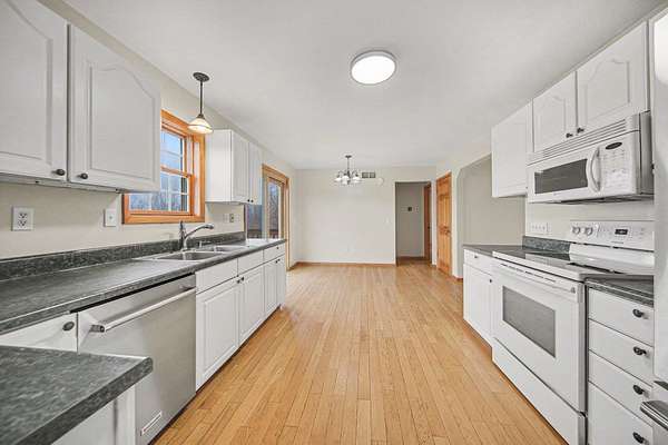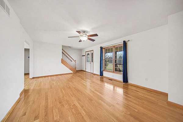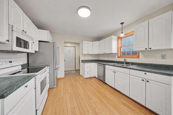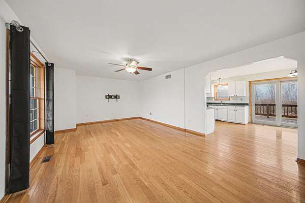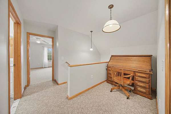 This custom-built Cape Cod-style home offers spectacular views from the back deck overlooking a picture-perfect pond and lowlands. Featuring 4 bedrooms and 2.5 baths, the home showcases warm natural-stained trim, solid wood doors, spacious upstairs bedrooms, first-floor laundry, and a partially finished walkout lower level with multiple rec-room spaces. Major updates include a new roof (2022), retaining wall (2025), gutters on house and barn (2025), kitchen sliding door (2026), and mudroom flooring with custom cubbies (2026). Kitchen dishwasher (2025); furnace (2018), AC (2023), washer/dryer (2021). Enjoy a 24x28 pole barn with electric, 16x12 deck and patio, covered front porch, cement pad, private primary bath, plus a 1-year HSA home warranty for added peace of mind.