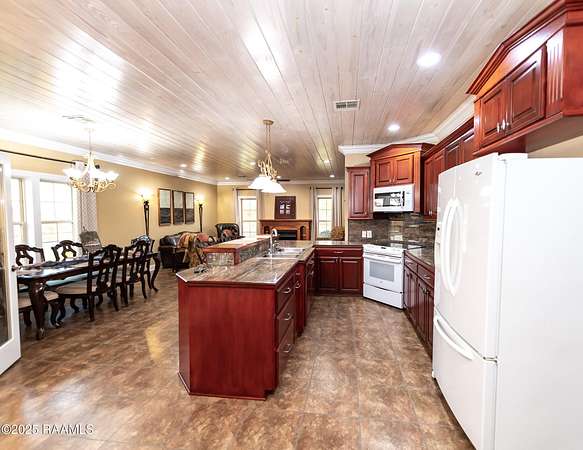 ZONED FOR BOTH IOTA & EUNICE SCHOOLS!!!X - Flood Insurance Not RequiredIncludes an inground beach entry Gunite saltwater pool, large shop, NEW roof and HVAC, stocked pond and the list of AMENITIES is ENDLESS!!!Discover the perfect blend of Acadian charm and modern luxury with this 3 bed, 2.5 bath brick beauty on 3.47 acres of serene countryside.Step inside to soaring 9+ ft ceilings (hello, Christmas tree goals!), two cozy gas fireplaces, and custom touches like built-in gun storage plus a v-groove whitewashed pine ceiling with window and door oak casings that make this home truly one-of-a-kind.Outside, it's all about lifestyle: splash in the inground Gunite saltwater pool with beach entry, enjoy your cabana, outdoor bath, and waterfall bench, or cast a line in your stocked pond. The entire property is wrapped in an iron fence for peace of mind, with a shed featuring electricity, water, and shelving ready for all your projects.This home offers country serenity with resort-style amenities--a rare find you don't want to miss. Schedule your showing today before someone else claims this slice of paradise!