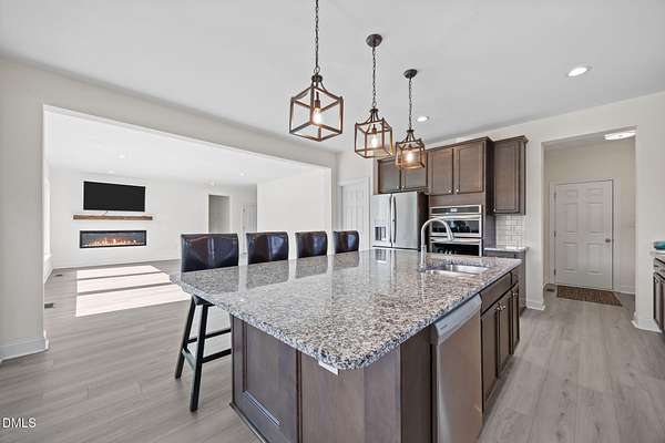 Luxury living in a country setting! This custom-built home with 5 bedrooms, 5 full bathrooms, is waiting for you! Situated on almost 5 acres of beautiful land, there is plenty of room to create your own oasis. The main floor offers a separate office with glass French doors. A large living room with electric fireplace is perfect for relaxing or entertaining. Step into large well-appointed kitchen with a large island for food prep and room to eat. The kitchen also offers a large walk-in pantry area that doubles as the laundry room. A main floor primary bedroom located at the rear of the house has large windows to be able to look out and enjoy the expansive property. The primary bathroom offers a walk-in shower, separate bathtub, double vanities and a walk-in closet. There is a second bedroom located on the main floor which also has its own full bathroom. Upstairs you will find 3 more bedrooms which all have their own full bathrooms. Upstairs you will also find a second living area that would be a great theater room. The property is located only 11 minutes from Louisburg and HWY 401 for easy access to Raleigh and the surrounding area. Make your appointment today to see this beauty and make your dream of living in a country setting a reality!