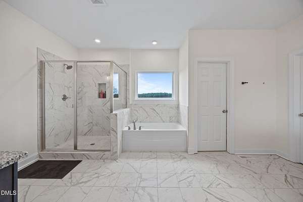 - Bathtub Only, Bathtub/Shower Combination, Double Vanity, Eat-In Kitchen, Kitchen/Dining Room Combination, Open Floorplan, Pantry, Primary Downstairs, Quartz Counters, Recessed Lighting, Separate Shower, Smooth Ceilings, Walk-In Shower, Water Closet