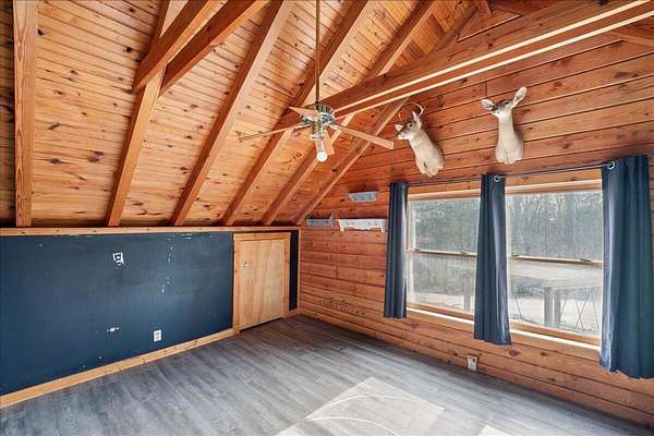 Enjoy the rural life style in this beautiful log home on 20 very private acres of all woods just minutes from Lawrenceburg, Kentucky right on the bourbon trail. In addition this property is turn key to start your own Airbnb with a detached 4000 square foot barndominium with 6 bedrooms and 4 full baths, a large family gathering area, and full kitchen. The log home has 2100 square feet with 3 bedrooms and 2 full baths on a full walkout basement. There are so many possibilities with income producing options. There is a detached utility building that is 30x36 for equipment and storage. Enjoy your own private lake in the back of the log home that is stocked with fish. Call for the details.