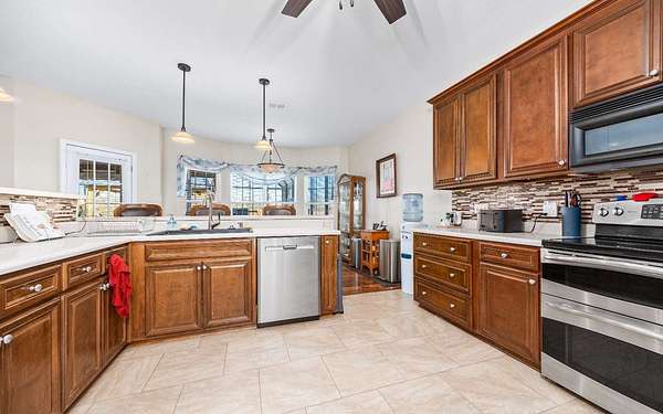 - Dishwasher, Double Oven, Dryer, Microwave, Refrigerator, Washer