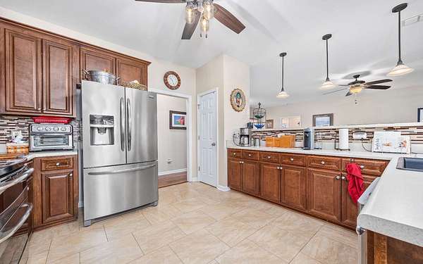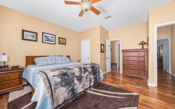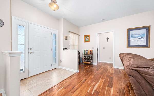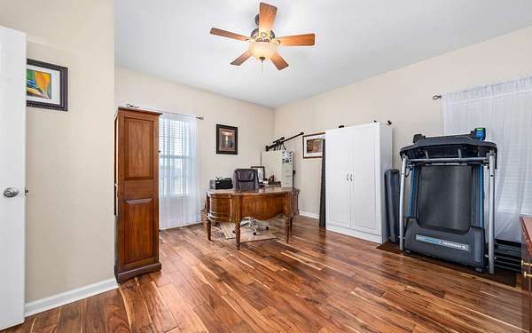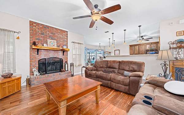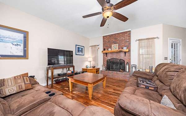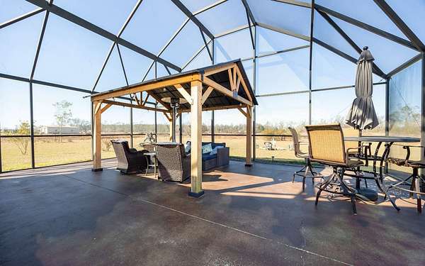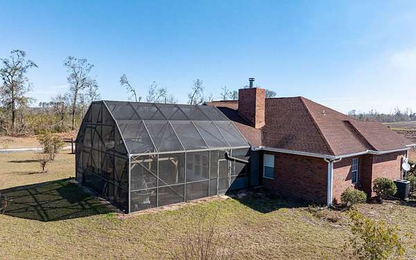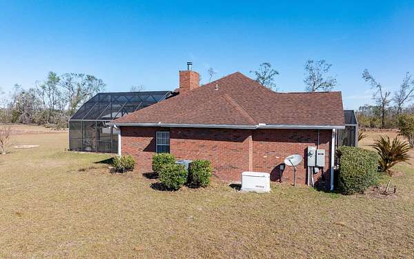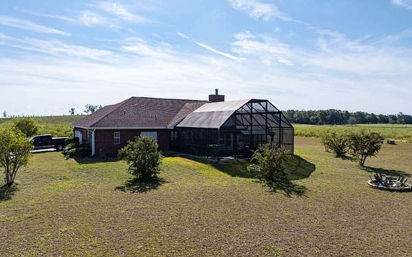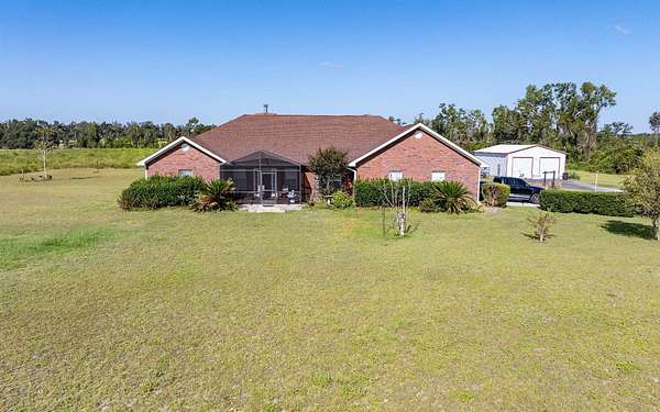 This 3-bedroom, 2.5-bathroom brick home offers a perfect blend of comfort, functionality, & country living. A welcoming fireplace for winter nights, a designated office, & a modern kitchen with w/stainless steel appliances to welcome family & friends. There is a 1/2 bath for guests, and the two bedrooms have a jack & jill bath. The large master suite has two closets, and look at the quality of those shower doors. FL room & large screened-in back porch w/heat fixture provide year-round enjoyment, & a screened front porch adds charm- features 2-car garage, whole-house generator for peace of mind, & plenty of storage. Property spans over 20 acres w/30x40 workshop with w/rolling doors- ideal for projects, hobbies, or equipment. This property is perfect for anyone looking for space, privacy, & rural FL living with w/modern conveniences. Salt Water Softener. Roof '12, HVAC '09, WH<10 yrs