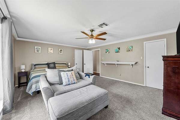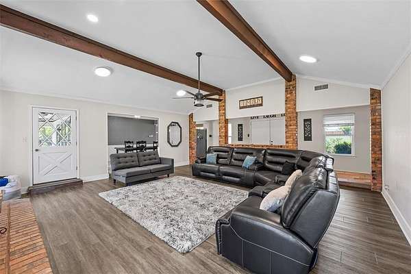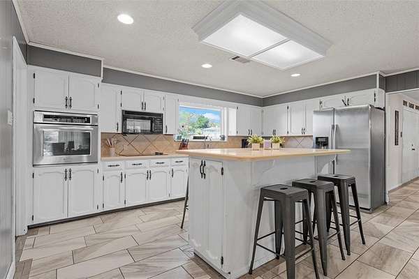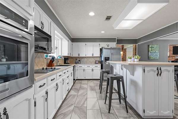 Spacious, versatile, and full of charm—this 4 bedroom, 2.5 bath home on 2.653 acres in Robinson truly has it all! Offering over 3,300 sq ft of living space, you’ll love the flexible layout featuring two oversized living areas and abundant windows that fill the home with natural light. The main living room serves as the heart of the home with vaulted ceilings, a cozy wood-burning fireplace, and plenty of space to gather and entertain. The open kitchen and dining area make everyday living a breeze, complete with an island breakfast bar, built-in cooktop, oven, microwave, dishwasher, and solid surface countertops. The oversized laundry room is a standout feature—offering folding space, a utility sink, room for an additional fridge or freezer, and a convenient half bath. Bedrooms throughout are generously sized with great closet space, while the private primary suite is tucked away at the back of the home and features two walk-in closets, dual vanities, a tiled shower, and direct outdoor access. Need extra space? You’ve got it! A detached game room with over 600 sq ft, plus additional workshop and garage space, provides endless possibilities. Step outside and enjoy everything this property has to offer—from the sport court and fully fenced backyard to the elevated playhouse and covered parking for 5+ vehicles. Plus, you’ll love the added bonus of access to Crow Creek, creating a peaceful, scenic setting. Conveniently located with easy access to Hwy 77 and IH-35, this property combines space, functionality, and location all in one. Don’t miss your chance to make this incredible Robinson property your own!