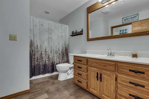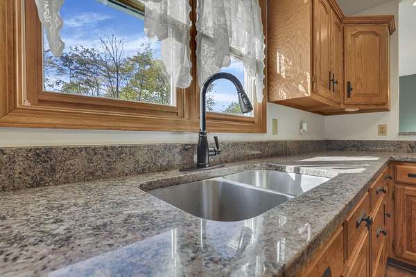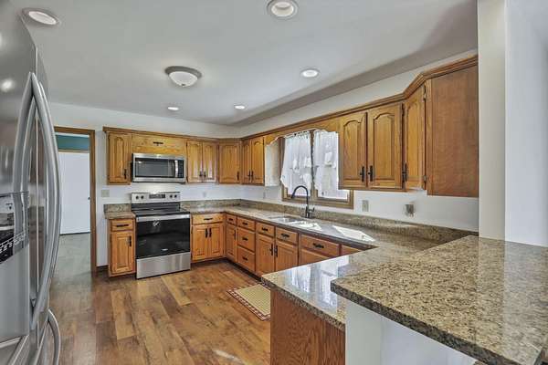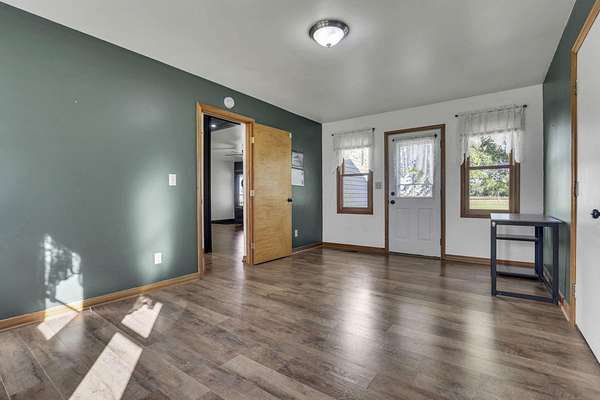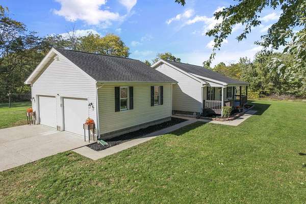 Welcome to your peaceful country retreat, set on 5 acres in a quiet farming community. This inviting home blends open space with modern comfort. Inside you'll find 3 bedrooms, 2 full baths, and a flexible lower level which is a full basement that can serve as a recreation room, home office, exercise room, pantry or use your imagination . Recent upgrades include all new flooring throughout, new matching cabinet hardware in the kitchen and bathrooms, new appliances, a whole-house water filtration system, new pressure tank for the well, and a water softener. The spacious country kitchen and dining area open to comfortable gathering spaces accented by a new shiplap feature wall. You''ll enjoy the large bathrooms, and the generous office. Outside, unwind on the front porch where you'll often spot deer and a variety of birds. The 30x32 barn offers ample room for storage or hobbies, featuring a gravel floor. The playhouse has been converted into a chicken coop with an automatic door. The 500-gallon propane tank is owned, not leased and remains with the home. All appliance including the washer/dryer remain with home also. A quiet setting, thoughtful upgrades, and open acreage make this property the perfect balance of comfort and country living.