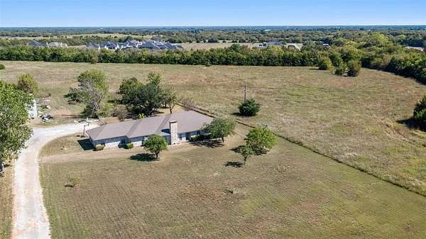 Motivated Seller!! Incredible opportunity awaits in this single story brick home, set on a generous two acre lot with prime frontage directly on Hwy 69. The strategic location near the intersection of SH 121 in Trenton provides both high visibility and convenient access. No MUD, No PID, No HOA, No known restrictions, outside city limits, that's a lot of freedom and ready for your ideas! This traditional brick home is loaded with comfort. The expansive living area is flooded with natural light and anchored by a breathtaking fireplace, creating a cozy and welcoming ambiance. The tray ceiling and recessed lighting are gorgeous. This spacious living area flows into a dedicated dining area which could easily serve as a home office. This kitchen is the heart of the home, featuring warm, inviting wood cabinetry and a smart, functional layout. A comfy dine-in area offers the perfect gathering spot for casual meals, morning coffee, or entertaining. The primary bedroom is spacious with a tray ceiling, inviting more natural light to pour in through large windows, and features a private ensuite bathroom for ultimate convenience and privacy. Two additional bedrooms and another full bath complete this sweet home. With a two car garage and great back yard, this property provides so many incredible options for today and the future. New septic system installed approximately 2 years ago. Room to grow, space to build, and don't forget about the highway frontage and no restrictions! Located within competitive Trenton ISD, which is currently expanding with a new high school and recently opened elementary. This property's location is something to consider, potential is waiting!