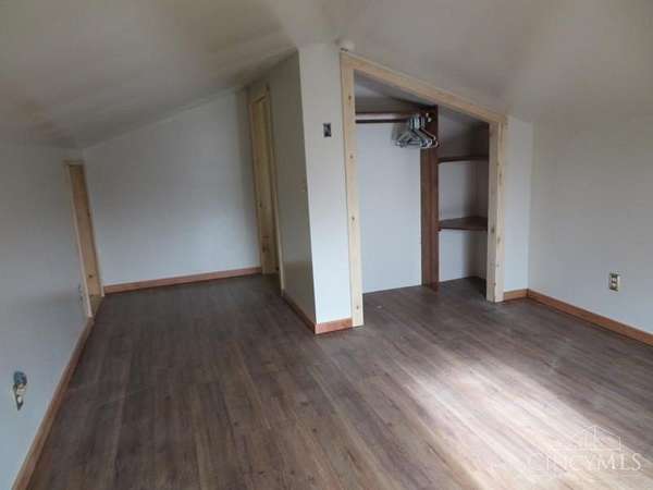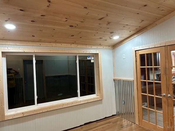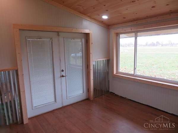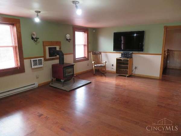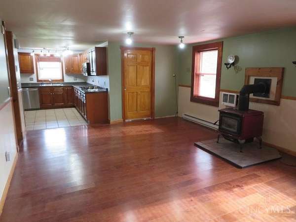 42x56 1.5 story barndominium situated back off the road at the end of a long circle driveway on 12 acres! 11x12 entry with glass French doors that open to an eat-in kitchen designed with attractive cherry cabinets, stainless steel appliances, lazy Susan & porcelain tile! Spacious 15x19 living room highlighted by a high efficiency Pacific Energy wood stove that can serve as a primary or backup heat source! 2 bedrooms, 1 full bath /laundry boasts a step-in shower & a Rinnai on-demand water heater! Foam insulated exterior walls make the living area easy to heat and cool! Amenities worthy of mention are the 30x32 garage/shop area, a concrete apron area & a large covered porch ideal for patio furniture! 7 acres of woodlands with trails, a fenced pasture, chicken coop, & private family campsite area creates a multitude of opportunities! Perfect for the whitetail hunter, homesteader, young couple getting started or a retirement destination! Easy access to St. Rt. 32!