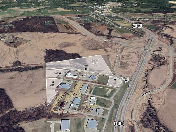 This dynamic business park in Dubuque County, adjacent to the City of Dubuque and near the Dubuque Regional Airport, presents a rare opportunity for development, investment, or owner-occupancy. With direct access from the new Southwest Arterial interchange with US Highway 151/61, the offering includes five unique tracts in the private development. The property features a 9,000 sq. ft. building with office space, an approximate 8-acre parcel suitable for light industrial or business use, a 25-acre tract zoned M1, and a 116-acre accumulation of parcels with both M1 and R2 zoning. In addition, a 2.93-acre parcel offers even more flexibility for future development. The business park is supported by an established Association that manages common areas, ensuring a professional and well-maintained environment. City water is available to the park, with septic systems currently serving each property. Utilities are provided by Maquoketa Valley Electric and Black Hills Energy, rounding out the strong infrastructure in place. This offering provides exceptional versatility for businesses or developers seeking a strategic location in one of the area's most accessible and growing corridors.