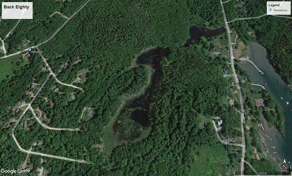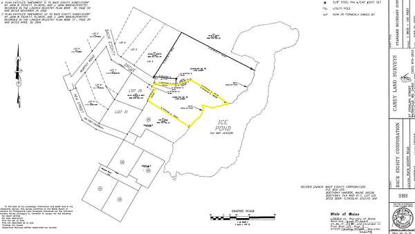 Est $776/moThis 2.68 acre parcel has 437' of waterfront on the Ice Pond in Boothbay. Great Blue Herons, deer, and lots of wildlife enjoy this pond making this a pretty spot to sit by the shore and watch nature. The building site is back from the pond offering a wooded location for privacy. Recently surveyed with the building envelope shown, soils tested, with power at the road, this lot is ready for construction.