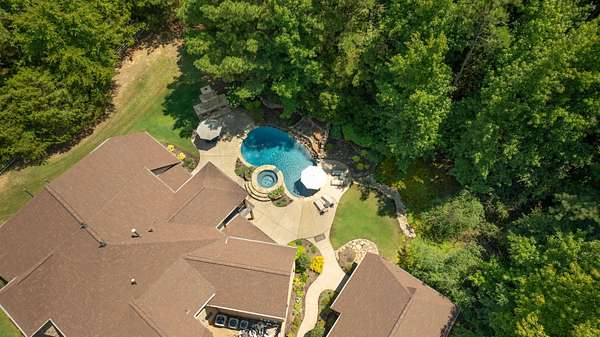 Custom-built home in Fayette Co (low taxes)! Second owner and sadly has to relocate for work. Seller added extended driveway pad with a parking pad behind gate to park trailer/rv + a lift kit in detached garage. This luxury estate in prestigious Aston Park sits on 1.96 private acres. A dramatic two-story foyer with a sweeping curved staircase introduces elegant interiors featuring 2 bedrooms and 2 baths on the main level, plus a chef’s kitchen, hearth room, living room with soaring ceilings, dining room, flex room, laundry, and mudroom. Upstairs offers a private en suite, 4th bedroom with Jack-and-Jill bath, game/media room, and screened balcony. Outside, enjoy a salt water luxurious pool + hot tub, 3-car attached garage, and 2-car detached insulated garage with bath, ideal for a future pool house or in-law suite. New roof, irrigation, insulated garage doors, and 28 KW whole-home generator. Aston Park amenities include a stocked 15-acre lake, 2 ponds, and walking trail.
