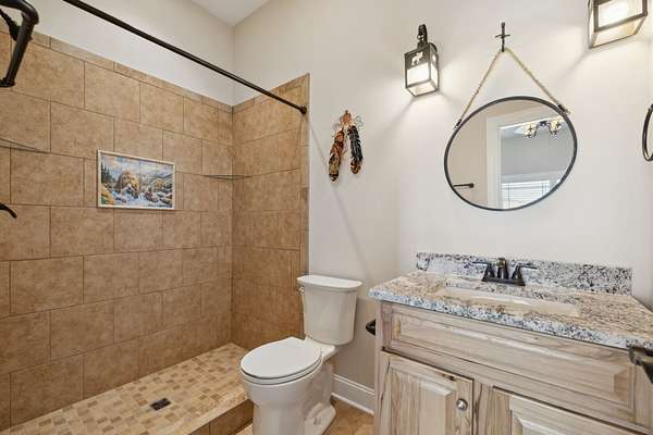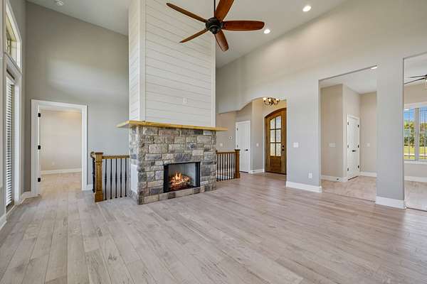 Experience luxury, comfort, and privacy in this immaculate all-brick custom home on 3 manicured acres. The open-concept main level features soaring ceilings, hardwood floors, and a stunning stone fireplace. A gourmet kitchen offers upscale finishes, quality cabinetry, and space for entertaining. The main-level primary suite provides a peaceful retreat, while the finished lower level adds two bedrooms, two baths, a media room with mini kitchen, a safe room, and bonus space ready for a 4th bedroom or office. Enjoy multiple outdoor living areas--an enclosed breakfast deck with fireplace, a covered patio, and a separate deck--all surrounded by mature landscaping. A massive 40x70 wired workshop completes this rare property.