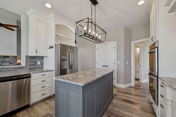 - Cooktop, Dishwasher, Double Oven, Electric Oven, Electric Range, Microwave, Refrigerator, Stainless Steel Appliance(s)