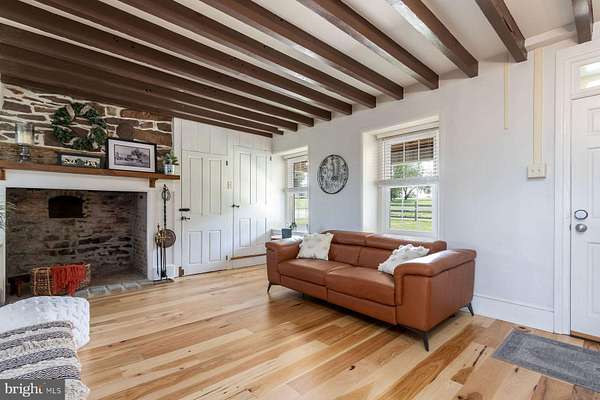 This stunning plaster over stone farmhouse seamlessly blends historic charm with thoughtful modern updates. Set on a picturesque parcel, the home features rich hardwood floors throughout, timeless character, and thoughtfully designed living spaces that honor its heritage while embracing today's lifestyle. The heart of the home is a fully updated gourmet kitchen, thoughtfully designed for both everyday living and entertaining. Featuring high-end appliances, custom cabinetry, and ample workspace, it's a chef's dream come true. Abundant natural light, flexible living areas, including a separate space ideal for a home office, studio, or private gym, make this the perfect country retreat. Updated mechanical systems provide peace of mind, combining classic architecture with contemporary comfort. Outside, the property continues to impress. Enjoy an amazing outdoor kitchen and living area featuring a built-in fireplace-ideal for hosting gatherings or cozy evenings at home. A re-sided barn offers flexible space for storage, hobbies, or potential expansion, while a large pole barn/garage is a standout feature for the auto enthusiast-complete with a vehicle lift and room for multiple cars or workshop needs. Whether you're drawn to the historic allure, the modern amenities, or the top-tier garage setup, this farmhouse offers a rare opportunity to enjoy the best of both worlds in a truly special setting.