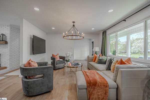 This is the one buyers wait for—and it won’t last. Contact Kennie Norris at 864-608-0865 to schedule your private showing. Completely reimagined and move-in ready, this stunning appx. 2,250 sq. ft. brick ranch combines modern luxury with one of the most walkable, desirable locations in Fountain Inn. Just steps from Fountain Inn High School, the Swamp Rabbit Trail, and a short stroll to vibrant downtown dining, shops, and entertainment—homes like this rarely come available. Set on an expansive 1.79-acre fenced lot, this property offers a level of space, privacy, and flexibility that’s nearly impossible to find this close to town. Whether you want room to roam, entertain, or simply enjoy your own private retreat—this one delivers. Inside, the open-concept layout showcases a show-stopping, fully upgraded kitchen with sleek countertops, custom cabinetry, modern lighting, and all-new appliances (included). Every inch of this home has been thoughtfully updated—from electrical and plumbing to HVAC, ductwork, flooring, and baths—giving you the feel of new construction without the wait. The primary suite is a true retreat, featuring a spa-inspired bath, generous sitting area, and a large walk-in closet. Two additional bedrooms offer flexibility, including a space that can easily serve as a den, office, or third bedroom (seller will add a door upon request). Step outside and you’ll understand what makes this property truly special: Relax on the charming front porch; Entertain on the spacious back deck; and, Enjoy the peace and privacy of your large, fenced acreage. A detached 3-car garage adds incredible value—perfect for storage, hobbies, or a workshop. Located in one of the Upstate’s fastest-growing areas with quick access to downtown Greenville, this home offers the rare combination of location, land, and fully updated living. Homes with this level of finish, land, and walkability are extremely hard to find—schedule your showing today before it’s gone.
