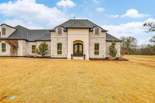 Welcome home, this beautiful Mediterranean style custom home and has ample space for a growing family, the large open concept living area with 12' ceilings with stone fireplace that stretches to the ceiling with a large hearth, the kitchen has beautiful granite counters with a large island, double ovens and gas cooktop, pantry is very spacious with built in shelves and plenty of room for your appliances and or wine collection. Nice split bedroom design with 4 beds and 3 full baths plus a huge bonus room upstairs. The 4.3 acres offers plenty of space for a shop or extra garage and room for large animals, front yard has beautiful magnolia trees and a pipe fence, the property is wide and deep.