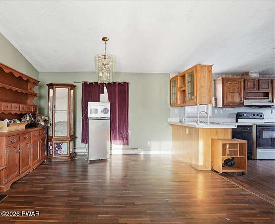 Raised Ranch on 2.13 Acres | Greentown (Greene Township), Pike County PA | No HOA3 bedroom, 2 bath single family raised ranch offers 1,400 sq ft on the main level plus a partially finished basement, all situated on 2.13 private acres in Greentown, PA. The property is priced to reflect its current condition and the opportunity it represents.The main floor features an open living, dining, and kitchen layout with a kitchen peninsula, breakfast nook, and a rear deck overlooking the property. The primary bedroom includes a private full bath. Two additional bedrooms share a full hall bath. First-floor laundry adds everyday convenience.The partially finished lower level provides a small recreation room or home office, an additional bedroom-sized room with a window and large closet, and a large unfinished area suitable for a workshop, hobby space, or additional storage. Approximately 560 sq ft is finished downstairs. The home has solid structural bones and is ready for a full interior renovation.The 2.13-acre lot is level, cleared, and well suited for a vegetable garden, chickens, or small-scale homesteading. There is room for a pool, patio, or hot tub if you want to build out the outdoor space. No HOA restrictions or fees mean you have the freedom to use the property as you see fit. Located within easy reach of Lake Wallenpaupack, skiing, and hiking. Wallenpaupack Area School District.An adjoining parcel of 5.06 acres with a second fixer-upper house is available separately at $175,000. Purchased together, both properties total 7.19 acres for $400,000, creating potential for owner-occupancy with a rental unit or short-term rentals (refer to Greene Township rental ordinance guidelines for short-term rentals). All buyers must have an appointment and be accompanied by an agent when looking at the property. No drive-bys without an agent. There are cameras on the property.