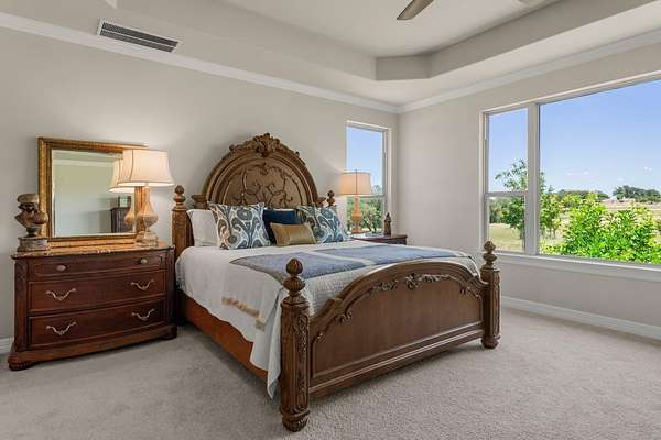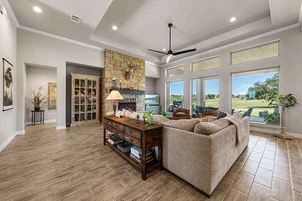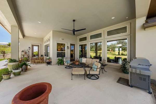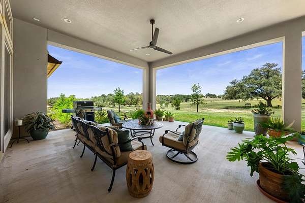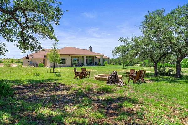 One story home on 3 acres with tons of privacy in the gated community of Summit Springs. Sit on your back patio and watch the black buck antelope or sit on the front porch for amazing Hill Country sunsets! This home offers 3 bedrooms with ensuite baths plus a flex game room/bunk room as a 4th in needed as well as a study! Great open floor plan with spacious primary suite and bath. Primary bathroom offers his and her closets, double vanity, and spacious walk-in shower. Other extras include large laundry room, expansive flex game room that opens to the porch, office off the front door, plantation shutters, firepit and raised bed garden.