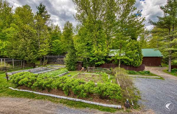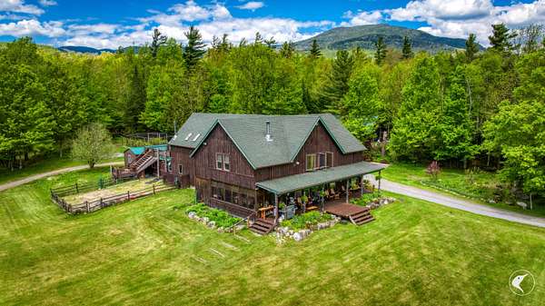 Tucked deep in the heart of the High Peaks Region of the Adirondacks, Solitude is a rare and extraordinary offering, a 42-acre private homestead located on scenic Clifford Falls Road, where peaceful seclusion meets awe inspiring wilderness. Set against a backdrop of towering peaks and endless sky, this one of a kind property is completely enveloped by sweeping mountain views and backed by over 28000 acres of protected ''Forever Wild'' state land. It is a place where the silence is broken only by the rustle of leaves and the sound of brooks tumbling over rocks, offering a once in a lifetime opportunity to live in harmony with the land. The main lodge features four bedrooms, 2.5 bathrooms, an updated kitchen, and a cozy sleeping loft. A wide, sunlit porch runs the length of the home and becomes an everyday sanctuary, perfect for reading, dining, or simply watching the clouds roll over Sentinel, Stewart, and Hurricane Mountains. Inside, natural finishes and rustic charm are paired with modern comforts, making the space equally suited for year round living or a seasonal getaway. This is more than a home; it is a working homestead. Over 1500 feet of frontage on Nichols Brook, fed by mountain streams from Sentinel, flows through the land. Walking trails and hand built bridges wind through forests, meadows, and along the brook's edge. The grounds are rich with opportunity: vegetable beds, flower gardens, berry patches, a high tunnel greenhouse, chicken coops, barns, and open space for livestock. Supporting this self sufficient lifestyle is a suite of thoughtfully designed infrastructure including underground electric, cable internet, an automatic generator, and a 1200 gallon spring fed holding tank feeding a 27 zone underground irrigation system. Just minutes away, the charming hamlets of Keene and Keene Valley provide access to local cafes, farmers markets, the iconic Mountaineer outfitter, and some of the most celebrated trailheads in the Adirondacks.