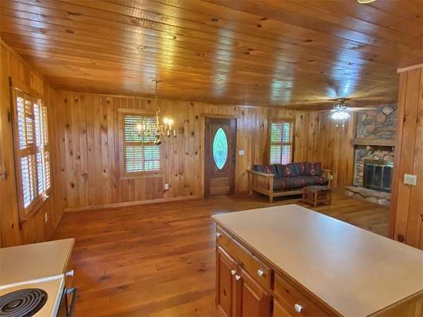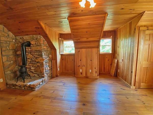 COUNTRY CASUAL - A home on 67+/- acres with open lands, Blue Ridge Mountain views, a creek, State of Georgia Forestland boundaries, and a lengthy and boisterous section of the Amicalola River a thirty-second walk away from the property into the Forest. A grassy and sprawling hilltop gives a pinnacle setting for the home where stone and woody accents carry through inside and out. Three bedrooms, two-and-a-half baths, a covered front porch, plus upper and lower covered back porches from which you can overlook the property and soak in the Blue Ridge Mountains accentuating the horizon. The all-natural interior with a warm finish gives off positive vibes and carries through both levels of the home. On the main level you can warm up in front of a stone fireplaces, plus the master bedroom on this level has its own fireplace - talk about cozy beneath the covers! An open concept kitchen and living area keeps family and friends close and the laundry is convenient to hand from the kitchen. Upstairs are two bedrooms and a full bath, one of them has its own doorway walking out to the covered upper porch that overlooks the lands and the Blue Ridge Mountains. Plus there's a spacious bonus room housing a cast-iron wood stove perched on a stack-stone pedestal. Bring on the hobbies! Outside in the adjacent garage is plenty of room for a couple of vehicles - also within is a workshop area with its own entrance and running water. Upstairs is a completely finished sleep-in room and a full bath. Further out the ridge are a couple of storage buildings and a shed. There's room enough on this property for every toy and implement you may possess. Much of the acreage has been cleared and grubbed of stumps - the intention was to plant into fescue-rich pastureland. Finish this out and you'll be rewarded with a fantastically beautiful and open countryside of hill and dale. In the valley, a small chortling creek runs through the property- perhaps a nice pond site could be in your future? A two-sided property border with a large section of State Forestlands gives protection, privacy, and even more room to explore. Take the trail down to the Amicalola River and walk the path alongside. Hop in and canoe or float, go splash and play; the water alternates from swift to deep and is cool, beautiful, and soundful. The setting in northwestern Dawson County is a rural and quiet one and you're in your own world. Nearby are all the amenities and activities that the Mountains have to offer but not far away are all the upscale urban conveniences important to life. The reward here is to command the potential of what can be one of the most beautiful properties with one of the most desirable settings in North Georgia. Make it a farm, make it a retreat, make it your home.