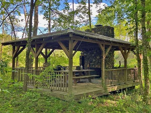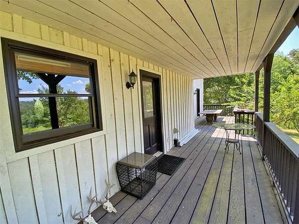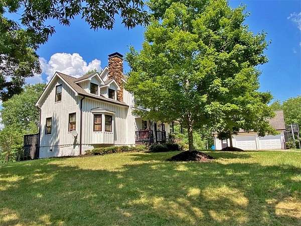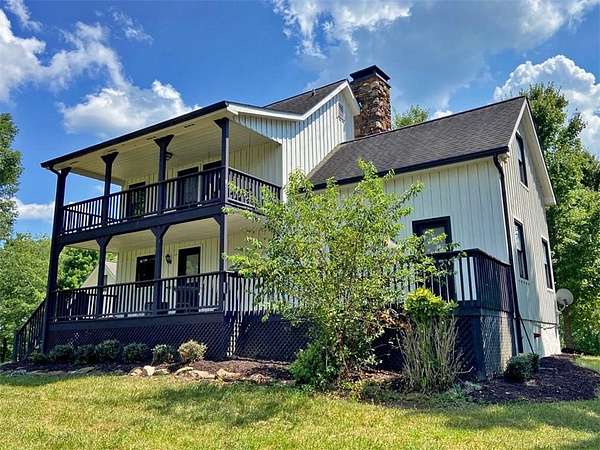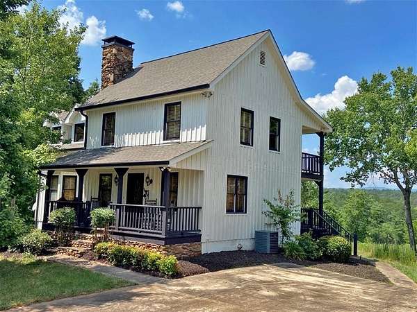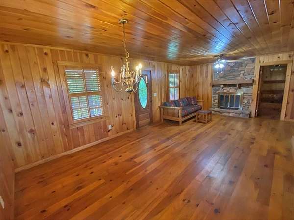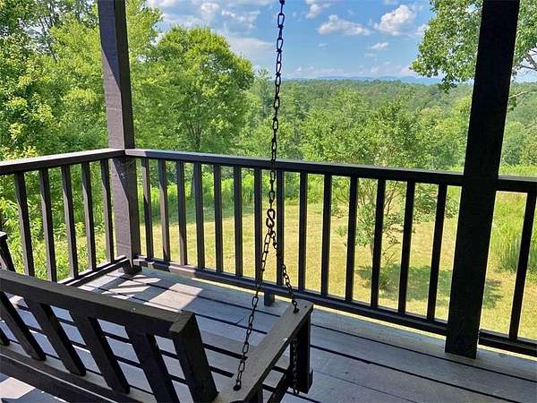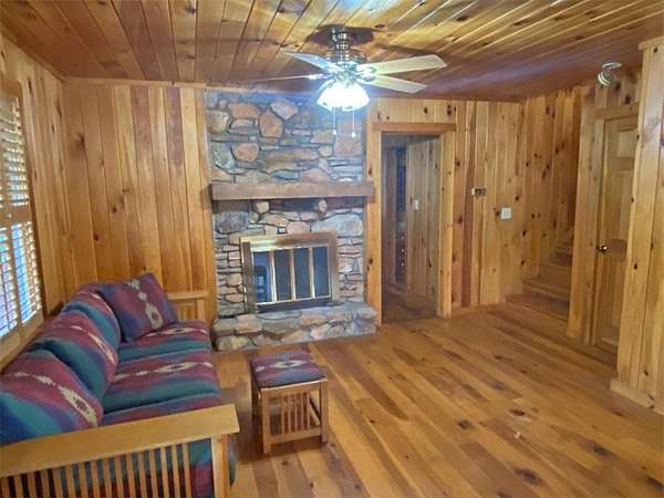 A grassy and sprawling hilltop gives a pinnacle setting for the home where stone and woody accents carry through inside and out. Three bedrooms, two-and-a-half baths, a covered front porch, plus upper and lower covered back porches from which you can overlook the property and soak in the Blue Ridge Mountains accentuating the horizon. The all-natural interior with a warm finish gives off positive vibes and carries through both levels of the home.