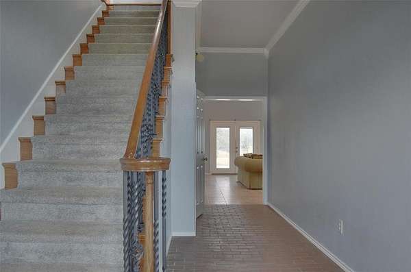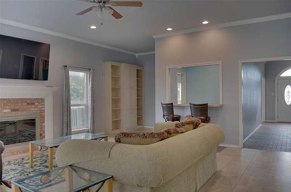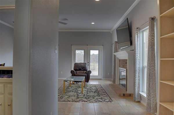 Horses allowed! Best location just 1.1 mile from interstate and outside city limits. The house features a large office with built in shelves, living room with fireplace, built in entertainment center, double French doors leading to patio, and a safe room attached. Enjoy the eat in kitchen with plenty of counter space, pantry, island and a fireplace, extra room could be game room, formal dining, second living, etc. Upstairs the house features 4 large bedrooms. 2 of which have their own bathroom. The huge master has its own fireplace, access to the balcony, dual closets, and sitting area. Master bath has a jacuzzi tub, separate shower and separate vanities. One bedroom has its own bathroom and the other two share a jack and jill bathroom. Roof was replaced July 2025. You have plenty of room outside for all your toys under the 30' x 60' carport with additional parking in the 2car garage. Pull up to your gated property that is entirely fenced and crossed fenced.