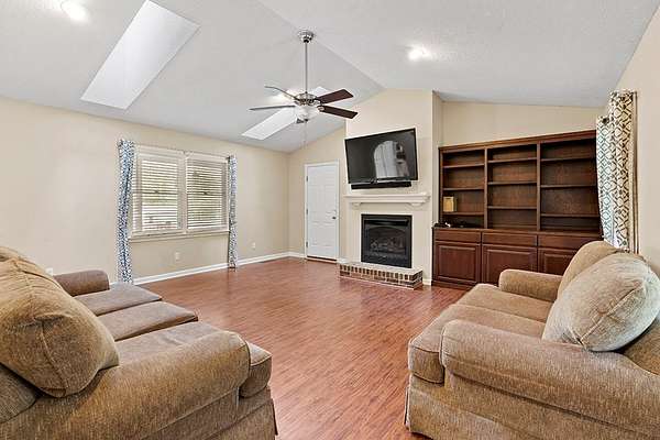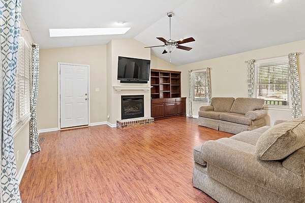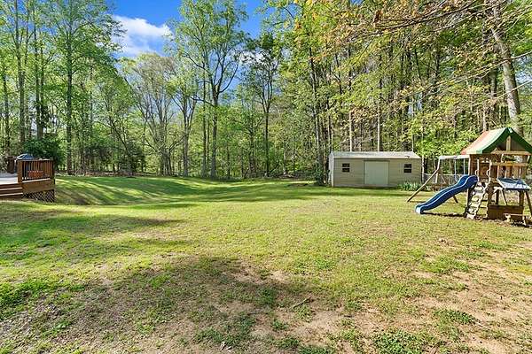 105 Decker Drive is tucked at the end of a peaceful cul-de-sac on the west side of town. This 2-acre property offers privacy while keeping you just minutes from Uptown Greenwood, Self Regional Healthcare, and three District 50 schools. It's truly one of the best locations in the area — quiet and convenient. Inside, the home features an inviting eat-in kitchen with an efficient layout, abundant cabinetry, and generous counter space. The living room is bright and welcoming, anchored by a fireplace and skylights that bring in natural light. The main level includes 4 bedrooms and 2 full baths, giving you plenty of room to spread out. The walk-out basement adds flexibility with a full bath, a sink and counter area, and a king-size Murphy bed that folds away for entertaining or drops down when guests stay the night. Outdoors, the property features a rocking-chair front porch, mature landscaping, and a yard that's half cleared and half wooded — the best of both worlds. A large portion of the cleared area is fenced, perfect for pets or play. Enjoy the spacious deck (partially covered), a storage building, and a 2-car garage. A private setting, a smart floor plan with tons of storage and an unbeatable west-side location come together to make this home a standout!