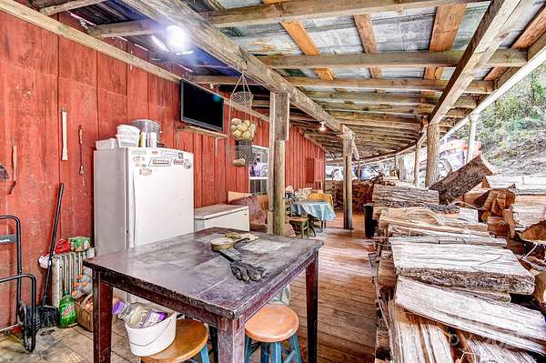 Rare Maggie Valley opportunity-nearly 21 unrestricted acres with long-range views and working farm infrastructure. Tucked just off Soco Rd and backing to Ghost Town in the Sky, this private end-of-road property features a 1930s rustic farmhouse brimming with authentic charm, plus multiple barns (feed/cattle/equipment), chicken coop, and fencing around most of the acreage for an active cattle operation. Enjoy spectacular mountain vistas from almost anywhere on the land, a spring-fed water supply to the home and a livestock pond, and large covered front and rear porches for year-round outdoor living. Options abound-create a private compound, build on multiple homesites, or explore development (buyer to verify). Prime location: ~13 min to Cataloochee Ski Area, ~18 min to Downtown Waynesville, ~27 min to Cherokee, ~40 min to Asheville.