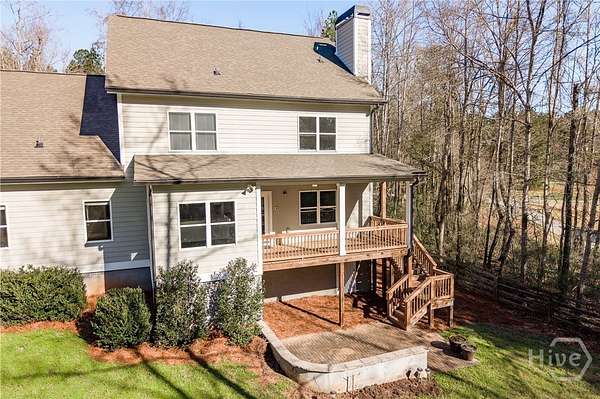 Peaceful living awaits in this West Athens residence sited on 1.59 acres. Constructed in 2018 by JW York Homes and recently refreshed with interior paint and new carpeting in all bedrooms. While the home is newer, the exterior architecture gives a nod to the stylings of yesteryear, especially with the wraparound front porch. Inside, the layout includes a spacious Primary Suite PLUS an additional bedroom suite with full bathroom on the main floor. Entering through French Doors into the main foyer, a formal dining room is on the right. Staight ahead is the Greatroom with 18ft+ ceiling and fireplace. The kitchen is complete with Quartz countertops, stainless steel appliances, breakfast bar, and a bright, cheery breakfast room overlooking the backyard. A covered back porch provides a birds eye view of the private backyard with mature trees, terraced, brick paver patio. The backyard is fully fenced with classic three board ranch rail wooden fencing. Back inside, the Primary Suite is roomy and features a large walk-in closet and ensuite bathroom with double vanity, garden tub, separate shower, and water closet. The upstairs offers additional living space for kiddos, a home office, or media room with the 22x17 bonus room. Additionally, there are three spacious bedrooms, one with a private full bathroom, and one with an attached bathroom that is shared with the final bedroom. With over 3,300 square feet, there is room for all to live comfortably. A drop zone off the kitchen leads to the laundry room and double garage. With this location, you'll be able to enjoy the quiet, stargaze in the backyard without light pollution, but still be convenient to all the great dining, shopping, sporting events, concerts and more that all make Athens a desirable place to live!
