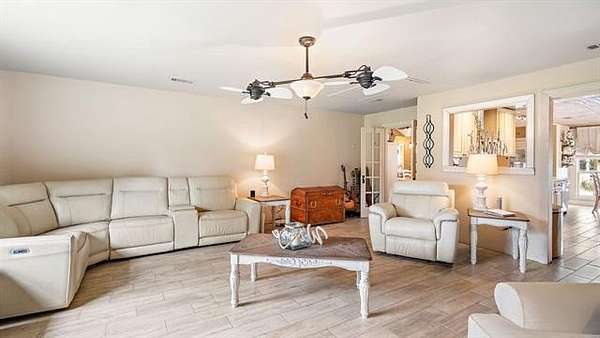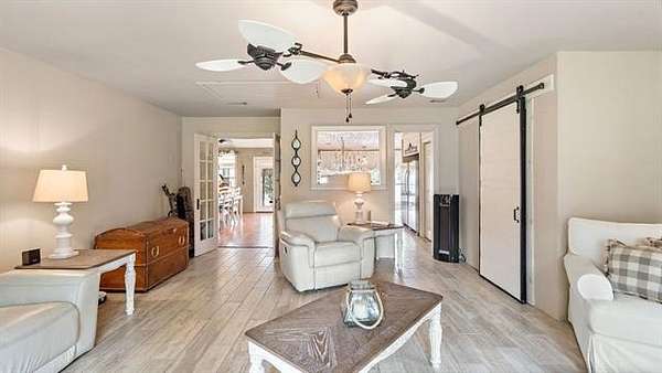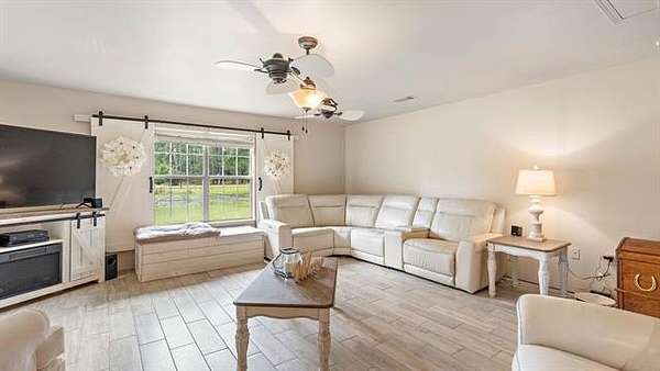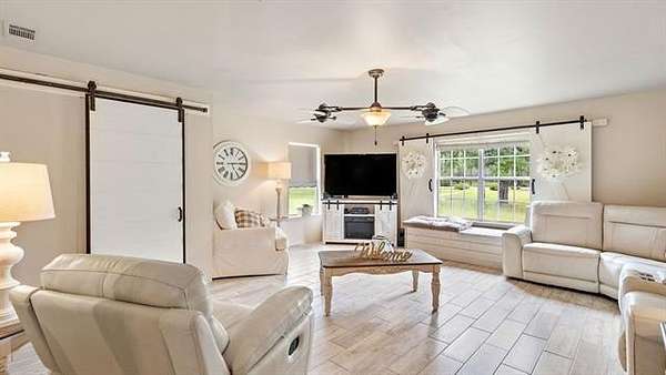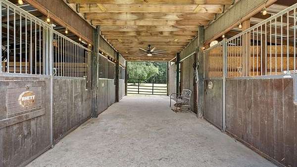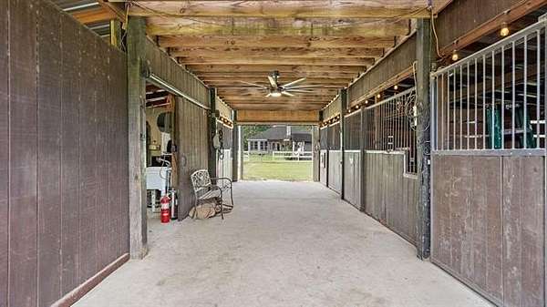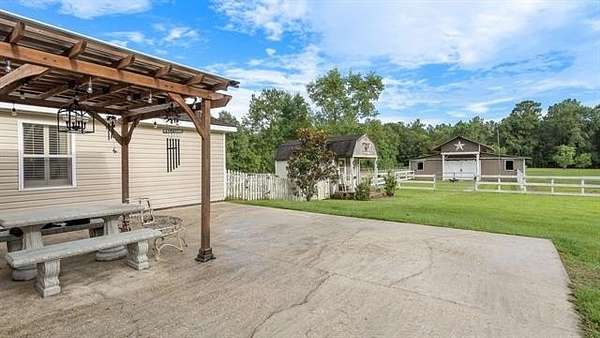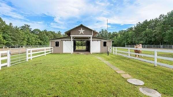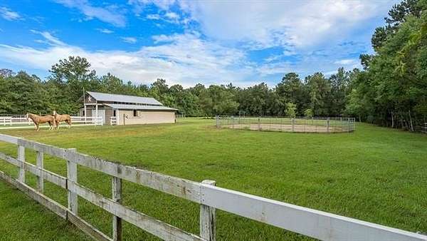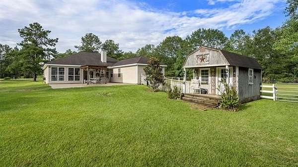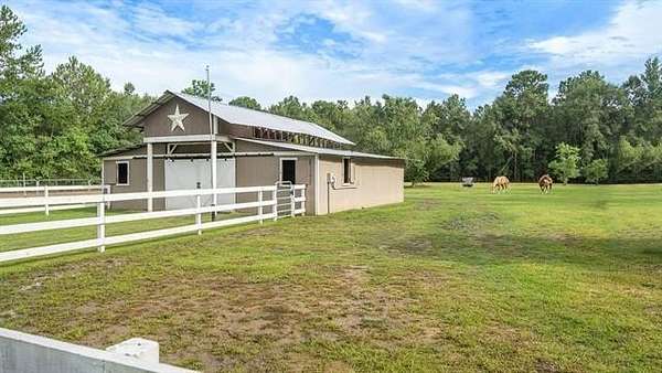 Bring your horses to your Dream Home on 4 acres in Merrywood Estates! This country property offers endless potential and is ready for your personal touch. While the home has been beautifully updated in some areas, it is in need of repairs and renovation to truly shine. Enjoy the peace and serenity of the outdoors with sweeping views of the expansive grounds, a fully stocked pond, a large patio perfect for entertaining, and a spacious storage shed. Equestrian enthusiasts will love the fabulous 5-stall barn, complete with a tack room, wash rack, running water, and electricity. There's ample room for farm animals, thanks to the fenced paddock and open pasture. High and dry in a no-flood zone, this property is a unique opportunity to create your ideal country retreat.