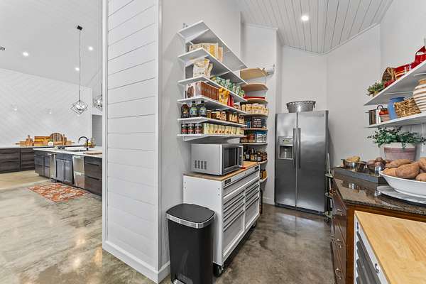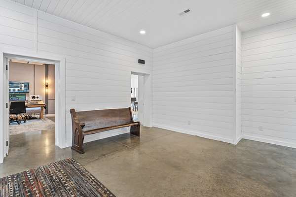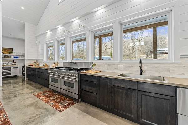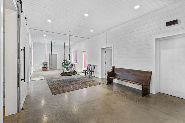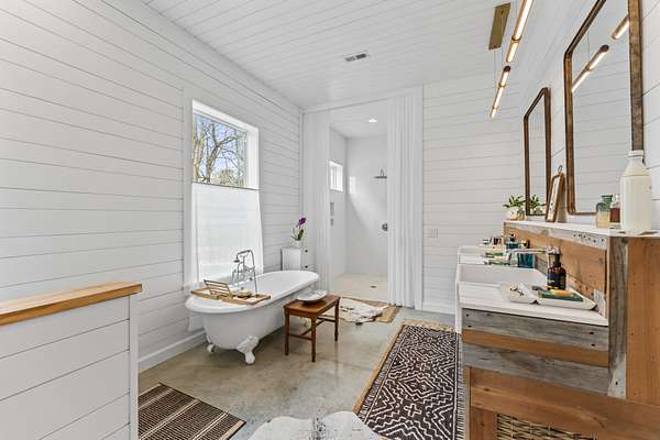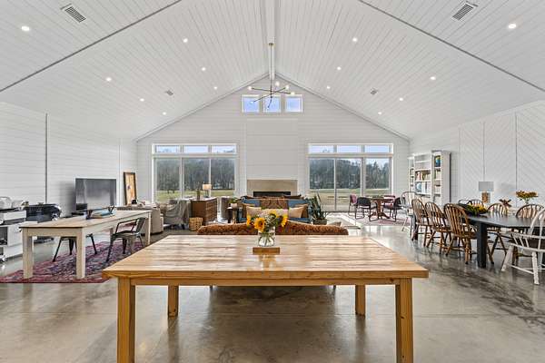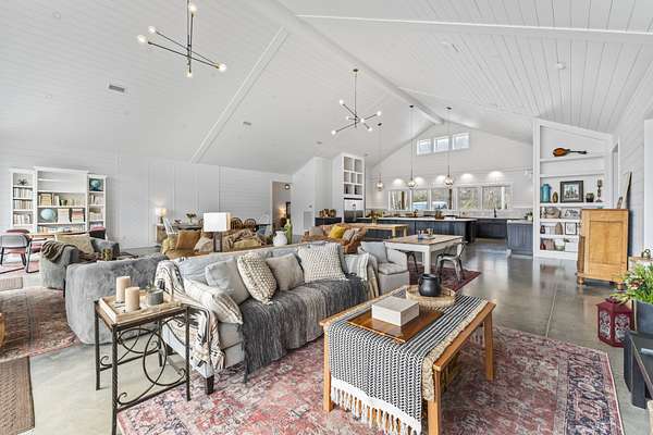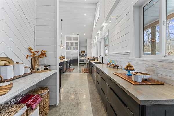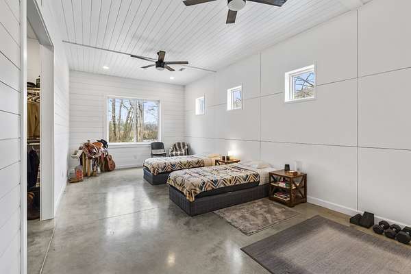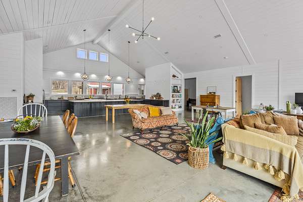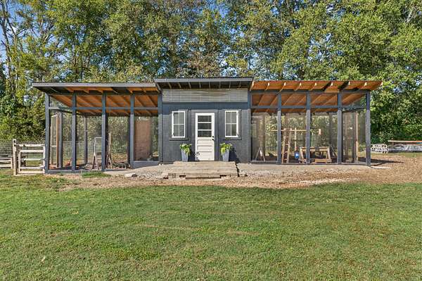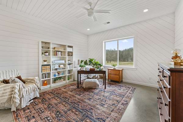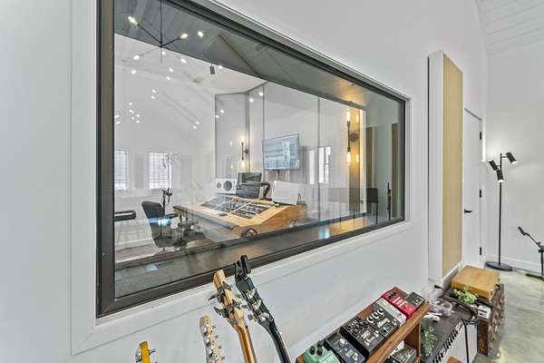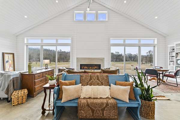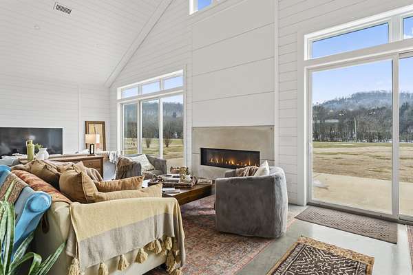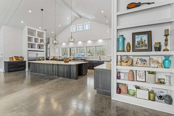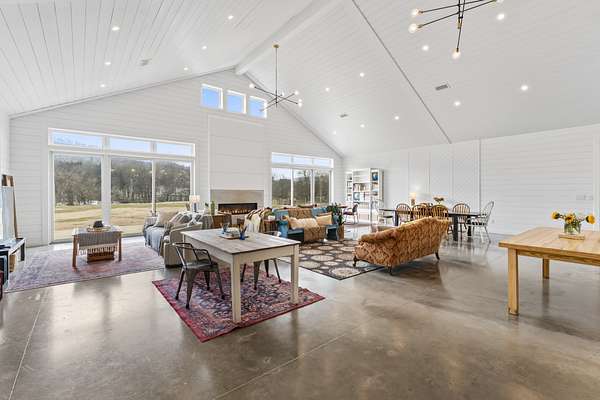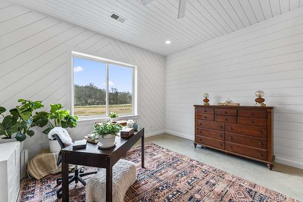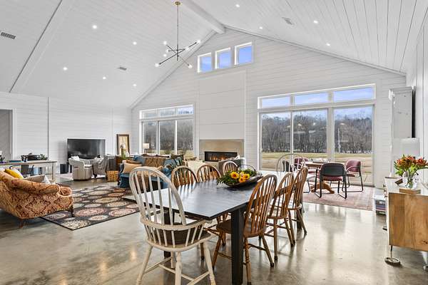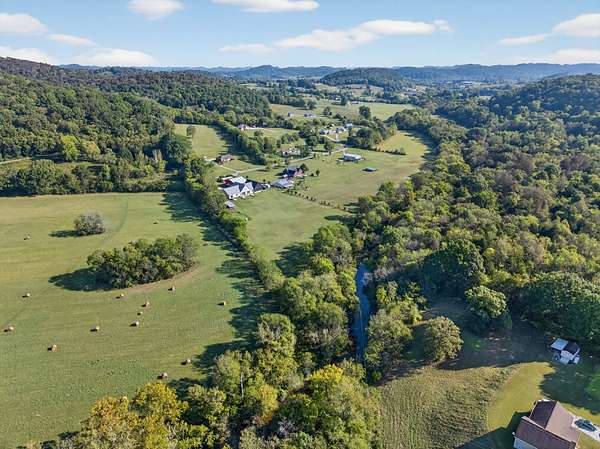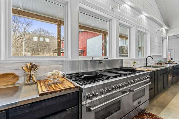 Stunning, custom-designed modern farmhouse w/professional music studio 5 mins. from I-40 and only 45 mins. east of Nashville airport. 7546 sq ft home on almost 6 acres of beautiful, level land w/spectacular view of surrounding hills -- a producer/musician/songwriter's dream haven and homestead. Spacious music studio w/optimal acoustic treatment could also function as media/theatre/family room, and the home is perfect for multi-generational living. This sprawling SINGLE-LEVEL home is thoughtfully-designed w/custom wood finishes throughout -- artfully-designed shiplap walls, extraordinary wood kitchen island, countertops, backsplash, and custom vanities in each of the 4 bathrooms and half bath. Impressive kitchen features 2 gourmet gas ranges/ovens, 2 double dishwasher drawers, 2 extra large sinks, full-size freezer and refrigerator, trash compactor, huge pantry w/refrigerator. 54 cabinet drawers provide ample storage for cooking and entertaining! Massive kitchen island features hidden play area/storage underneath. Spacious, light-filled great room w/soaring ceilings, 2 dining areas, 3 seating areas, library space, and linear gas fireplace w/custom concrete surround. Each of 4 generously-sized bedrooms has its own bath. Primary bedroom w/private entrance to patio overlooking back yard. Primary bath offers grand walk-in shower, gorgeous clawfoot tub, and farmhouse sinks. Two more baths offer walk-in showers, while the other boasts gleaming cast iron tub/shower. Huge laundry/mud room w/2 washers, 2 dryers, giant stainless utility sink w/entrance from 40x12 patio overlooking back property -- which includes chicken coop/garden shed, 4 fenced henyards and garden areas. Enclosed breezeway connecting home to studio and barn is large enough for 3 swings, exercise equip.,and sunny sitting area. 50x60 drive-thru barn for RV, 3 cars, workshop. Sep.1BR 1B apt. for guest retreat. 5-acre invis. fence for dogs. RV hookups, studio loading dock, covered front porch, room for a pool!