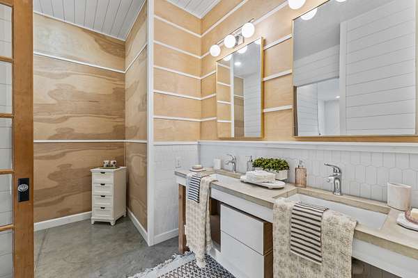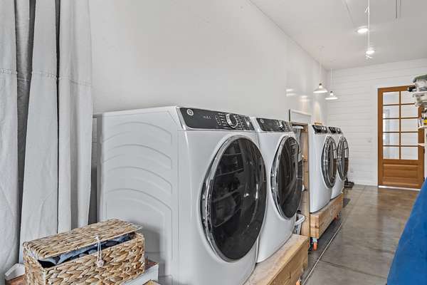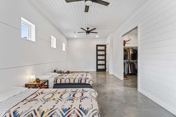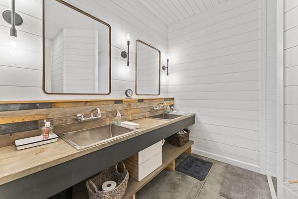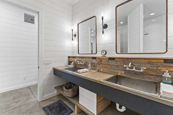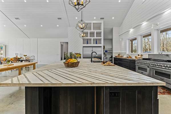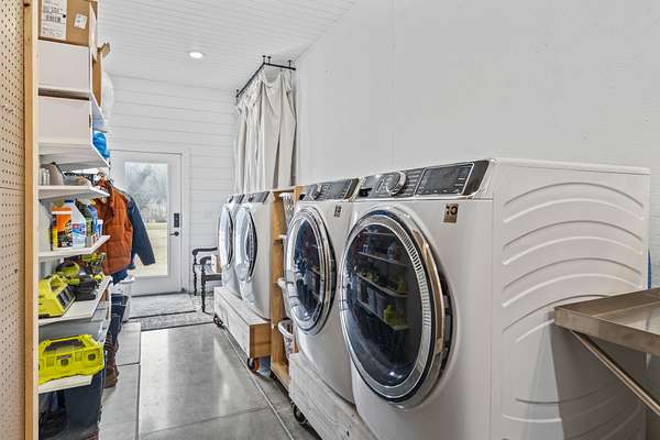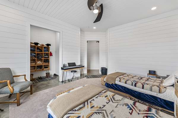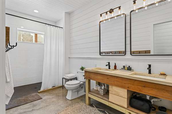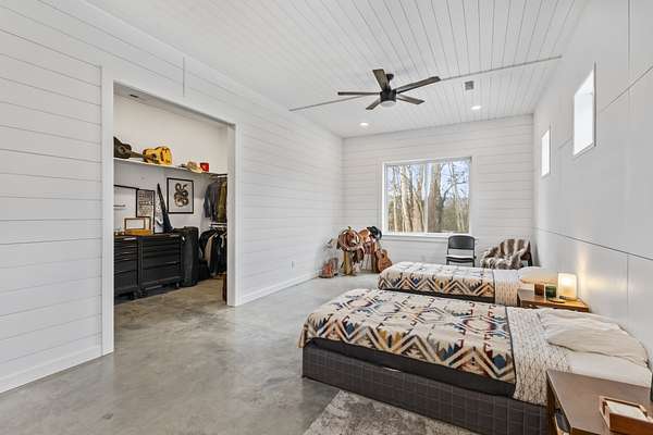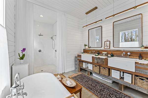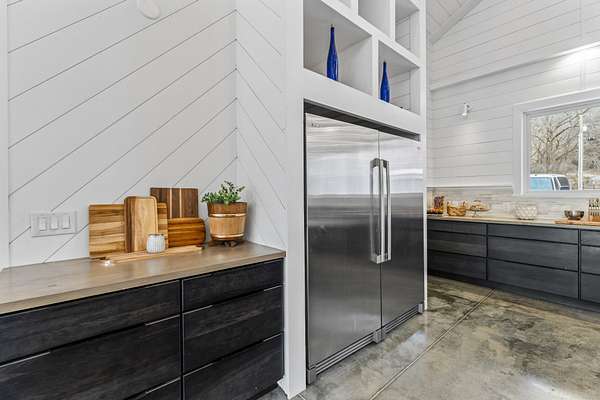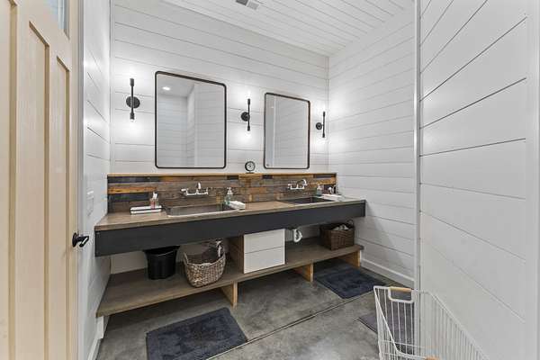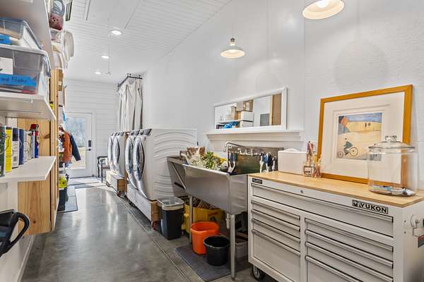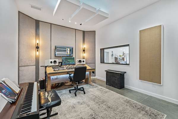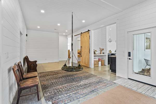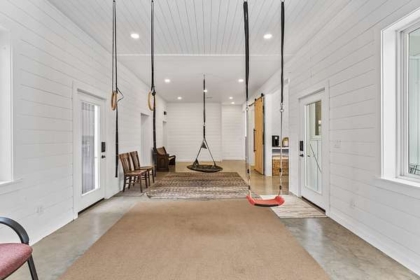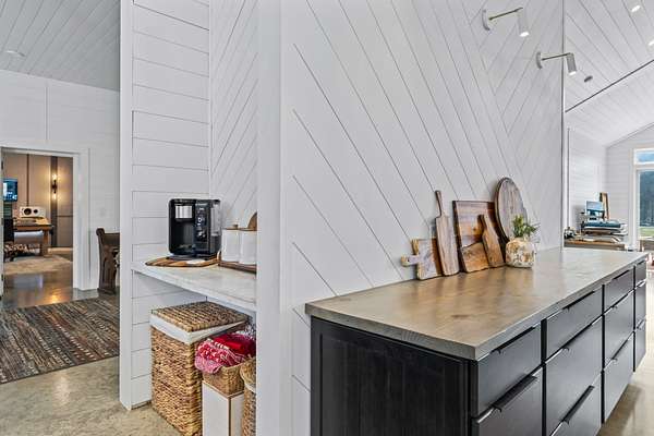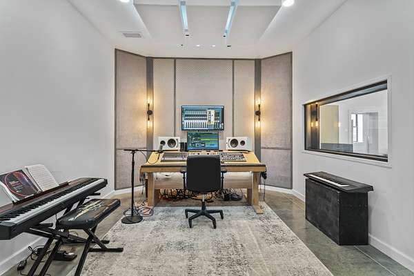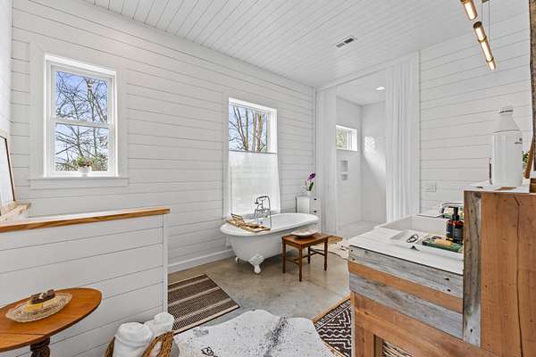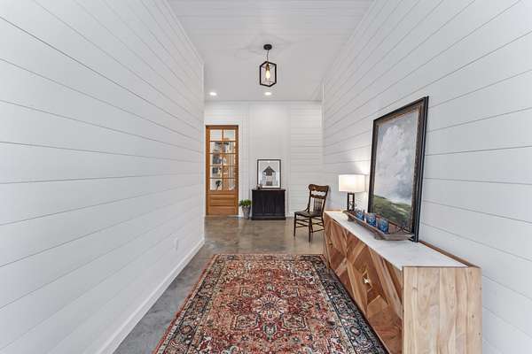 Stunning, custom-designed modern farmhouse w/professional music studio 5 mins. from I-40 and only 45 mins. east of Nashville airport. 7546 sq ft home on almost 6 acres of beautiful, level land w/spectacular view of surrounding hills -- a producer/musician/songwriter's dream haven and homestead. Spacious music studio w/optimal acoustic treatment could also function as media/theatre/family room, and the home is perfect for multi-generational living. This sprawling SINGLE-LEVEL home is thoughtfully-designed w/custom wood finishes throughout -- artfully-designed shiplap walls, extraordinary wood kitchen island, countertops, backsplash, and custom vanities in each of the 4 bathrooms and half bath. Impressive kitchen features 2 gourmet gas ranges/ovens, 2 double dishwasher drawers, 2 extra large sinks, full-size freezer and refrigerator, trash compactor, huge pantry w/refrigerator. 54 cabinet drawers provide ample storage for cooking and entertaining! Massive kitchen island features hidden play area/storage underneath. Spacious, light-filled great room w/soaring ceilings, 2 dining areas, 3 seating areas, library space, and linear gas fireplace w/custom concrete surround. Each of 4 generously-sized bedrooms has its own bath. Primary bedroom w/private entrance to patio overlooking back yard. Primary bath offers grand walk-in shower, gorgeous clawfoot tub, and farmhouse sinks. Two more baths offer walk-in showers, while the other boasts gleaming cast iron tub/shower. Huge laundry/mud room w/2 washers, 2 dryers, giant stainless utility sink w/entrance from 40x12 patio overlooking back property -- which includes chicken coop/garden shed, 4 fenced henyards and garden areas. Enclosed breezeway connecting home to studio and barn is large enough for 3 swings, exercise equip.,and sunny sitting area. 50x60 drive-thru barn for RV, 3 cars, workshop. Sep.1BR 1B apt. for guest retreat. 5-acre invis. fence for dogs. RV hookups, studio loading dock, covered front porch, room for a pool!