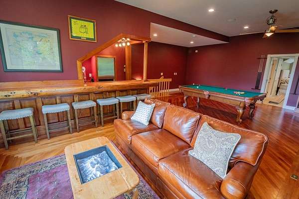 An exceptional Jackson Estate with unrivaled privacy and views. Nestled at the end of a winding driveway, this extraordinary home offers seclusion and serenity across more than four picturesque acres. Inside, soaring turret windows frame breathtaking views of Mt. Washington, flooding the home with natural light and providing a constant connection to the stunning landscape. Designed with entertaining in mind, the chef's kitchen boasts a grand center island perfect for gatherings, alongside a premium Viking dual oven and six-burner range--ideal for culinary enthusiasts. As the sun sets, your options for relaxation and entertainment abound: challenge friends to a game in the elegant billiard room complete with an English-style bar, unwind by the commanding floor-to-ceiling stone fireplace in the living room, or head outside to the custom-built fire pit to watch for shooting stars under a canopy of trees. Lovingly maintained and thoughtfully updated over the years, this one-of-a-kind property is ready for its next chapter; inviting new owners to create lasting memories in one of Jackson's most coveted locations.