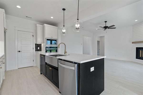 Discover contemporary country living at its finest in this newly finished 4 bedroom custom-built home, just minutes from highly desirable Weatherford, Texas. Designed with modern style and functionality in mind, this home sits on open land with no restrictions--giving you the freedom to truly make it your own. 4 Bedrooms, 2 Bathrooms - Spacious layout perfect for families, guests, or a home office. Open Concept Living, seamless flow from the living area to the kitchen and dining space. Stunning Modern Fireplace - A beautiful centerpiece that adds warmth and elegance to the main living space. Custom Kitchen with Quartz countertops, oversized island, custom cabinetry, and stainless-steel appliances. Sleek Modern Design - Clean lines, large windows, and premium finishes throughout. Outdoor Potential - Room to add a pool, workshop, or enjoy wide open views under the Texas sky. No Restrictions - Ideal for RVs, animals, short-term rentals, or future additions