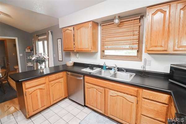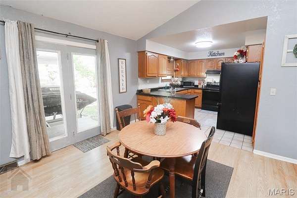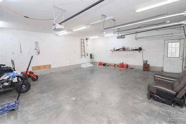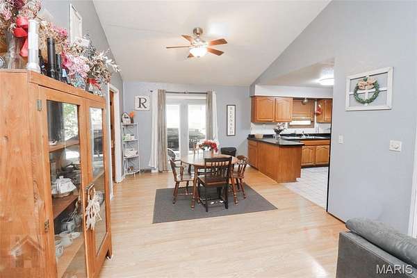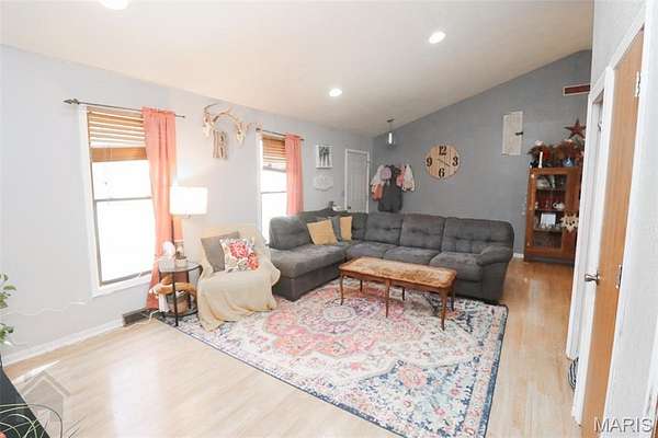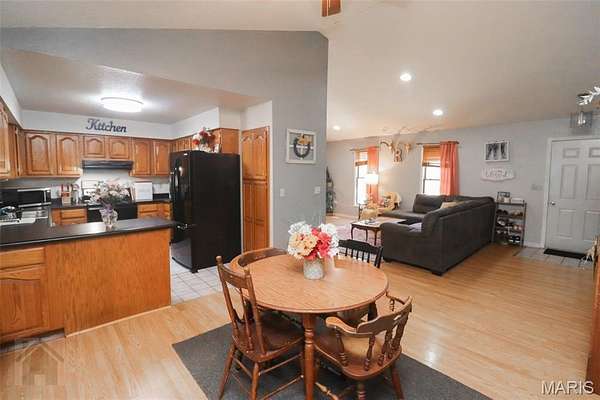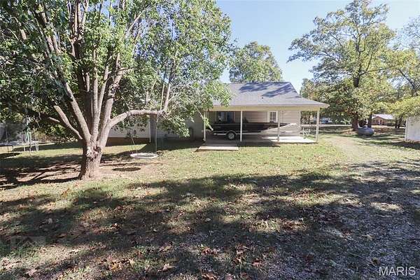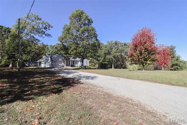 This perfect family friendly 3 bedroom, 2.5 bathroom home sits on a beautiful 2 acre lot with a prime location just off I-44, close to town yet offering plenty of space and privacy. One of the property's best features is the detached 2 car garage with a concrete floor and full electric, ideal for parking, a workshop, or extra storage. Step inside from the covered front porch and you'll be greeted by warm, durable vinyl plank flooring and a vaulted ceiling that adds to the open concept layout feel of the main living area. The living room flows seamlessly into the kitchen and dining space, where you'll find medium oak color cabinetry, tile flooring, black appliances, laminate countertops, a breakfast bar, and a convenient closet pantry. Down the hall to the bedrooms you will find the primary suite that features vinyl plank flooring, a spacious walk in closet, and a private en suite bathroom complete with double sinks, a separate shower and tub. Two additional bedrooms are located nearby, along with a full guest bathroom featuring a shower/tub combo, perfect for family or guests. The home also offers a separate laundry room with plenty of storage space and a half bath for added convenience. Step out back and you'll find a massive covered patio with a concrete slab, ideal for entertaining, relaxing, or even storing your boat or recreational equipment. The large, level yard provides endless opportunities for play, gardening, or simply enjoying the peaceful country setting. This property is serviced by a private well and septic system to help keep utility costs low. Additional energy efficient features include a Hardy wood furnace with hydronic coils for hot water on demand, reducing the load on the water heater. From the open living spaces to the beautiful flat 2 acres and detached garage, every part of this property was designed with family living and everyday comfort in mind. Schedule your showing today and see everything this incredible property has to offer!
