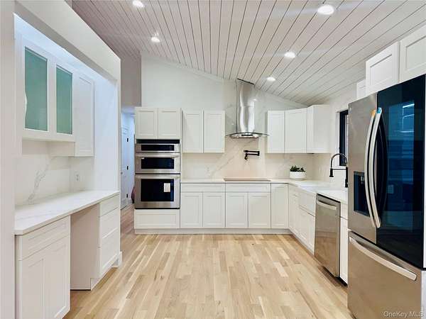 Welcome to 105 Old Riverhead Rd, Experience the best of the Hamptons living in this great High Ranch, modern elegance Perfectly positioned on a spacious 2.64 acre lot in the heart of Hampton Bays, where this home being renovated throughout offers 4 bedrooms, 3 bathrooms, and over 2.600 square feet of meticulously designed. the welcoming covered balcony on the side and rear set the stage for year-round indoor-outdoor living. Inside, the home impresses with soaring ceilings, oversized Andersen ENERGY STAR windows. Throughout the home, upstairs, wide-plank white oak hardwood floors add warmth and character, while the designer kitchen features Avanti quartz countertops, stainless steel appliances, 3 bedrooms filled with natural light, along with 2 well-appointed bathrooms throughout. and sleek finishes ideal for both everyday living and entertaining. Downstairs, the thoughtfully designed layout includes 2 bedrooms, laundry, full bathroom and the recreation space offers bar zone and wine fridge. the ultimate retreat. Step outside to your own backyard oasis complete with a heated pool, surrounded by elegant oak wood coping, curated landscaping. A car garage with dual electric doors adds convenience and functionality. Additional Features & Energy-Efficient Upgrades Include: central vacuum, Navien tankless hot water heater, Dual-zone central air & gas furnace HVAC system, Closed-cell spray foam insulation for superior thermal performance, Andersen Low-E windows for reduced heat transfer and UV protection, High-efficiency plumbing and mechanical systems throughout Located just minutes from beaches, bays, shopping, and dining, this exceptional home captures the very best of Hamptons living-offering a sophisticated yet relaxed lifestyle in a coveted coastal setting.