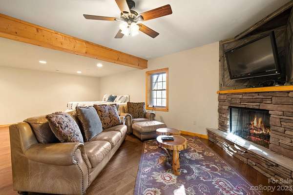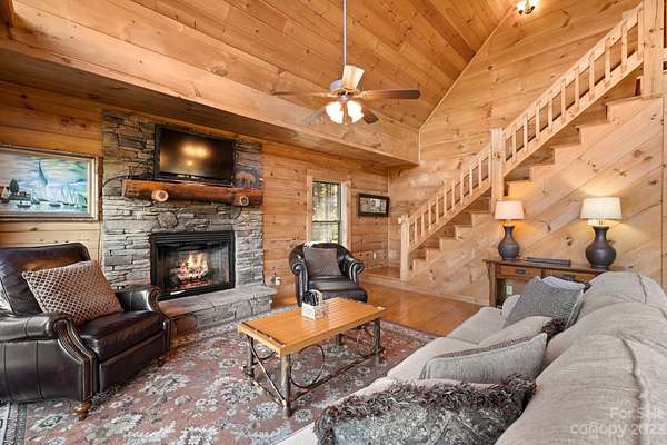 Turn-key log home vacation rental is ready to make your living in the mountains a dream come true! This 4-bedroom, 3.5 bath cabin will take your breath away! Home is 7 miles to the Beach at Lake Lure, 8 miles to Chimney Rock State Park, and 14.9 miles to the Tryon International Equestrian Center (TIEC). Private gated retreat, tranquil and peaceful neighborhood, surrounded by over 50 acres of forest, home to wild turkey and deer. Just under 2 miles from Lake Lure, a large grocery store, restaurant, and medical center. The living room just off of the kitchen is great for entertaining next to the gas fireplace connects to wrap-around deck with nature views, gas grilling area, rocking chairs, and a perfect site for stargazing. Finished lower level features open family room and entertainment area with a fireplace. Enjoy the ping pong table, bar area, and outside fire pit for evenings under the stars.