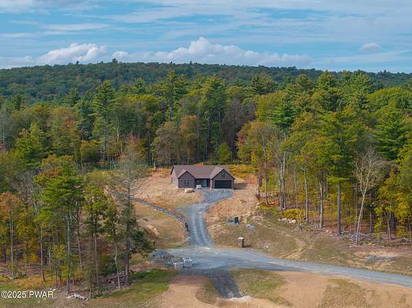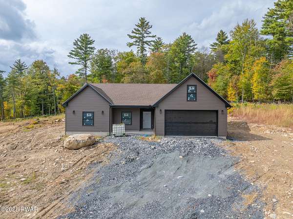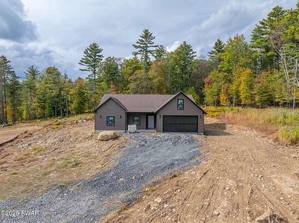 From Milford Rd, turn right onto Raymondskill Rd. After passing Keisel, turn right onto Skyview Ln, then left onto Ridgecrest; the home is the only one in the cul-de-sac.