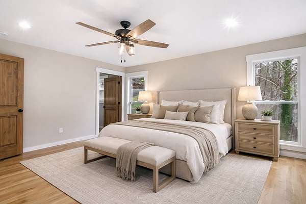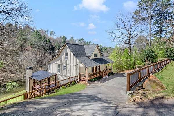 4BR | 3.5BA | 3.32 Acres | 128 Ft Cartecay River Frontage | No HOA | No Subdivision | Seasonal Mountain Views | High-Speed Internet- with outbuilding/workshop garage and additional lot - Fully Renovated RIVERFRONT Retreat on 3.35 Acres with Party Deck, Workshop & Second Homesite Potential! Rental projection from $100-140k+!! Welcome to 105 River Edge, a fully renovated riverfront retreat offering the perfect blend of modern luxury, privacy, and outdoor living on 3.32 acres with 128 feet of Cartecay River frontage. This stunning 4-bedroom, 3.5-bath home with a loft and bonus office (potential 5th bedroom) has been completely gutted and rebuilt, featuring all-new electrical, HVAC, ductwork, insulation, roof, windows, sheetrock, flooring, lighting, and more—making it essentially brand new. The thoughtfully designed layout includes one bedroom on the main level, two bedrooms upstairs, and one bedroom in the finished basement, providing ideal separation for guests and family. The main level showcases real white oak hardwood floors, a bright open living room with a gas log fireplace, and a beautifully updated kitchen with stainless steel appliances, granite countertops, tile flooring, a large island, pantry, and seamless flow into the dining area. The primary suite on the main level features hardwood floors, a walk-in closet, and a luxurious bath with dual vanities and a tiled shower, along with a convenient half bath for guests. Upstairs offers two spacious bedrooms with walk-in closets, a full bath with tile and granite finishes, and a versatile loft space. The finished basement boasts 10-foot ceilings, a large living/game room, a full bedroom and bath, plus a bonus workout room or office that can easily function as a fifth bedroom. Outdoor living is exceptional, featuring an oversized covered “party deck” overlooking the river with a wood-burning fireplace with gas starter, wiring for a TV and fans, and reinforcement already in place for a future hot tub. The flat, usa