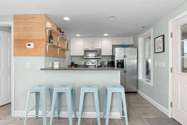 Discover the charm of coastal living in this cozy Cedar Island cottage set on a spacious 3.89-acre lot with Pamlico Sound views and direct access to sandy beaches just a short walk away. Designed for relaxed island living, the home features an open floor plan ideal for entertaining or unwinding after a day on the water. The home offers 2 bedrooms, with a 3-bedroom septic permit, providing flexibility for future expansion. A large enclosed, finished porch with a daybed adds inviting extra living space-perfect for morning coffee, afternoon naps, or hosting guests. The kitchen has granite countertops and stainless steel appliances.. Tile and hardwood floors run throughout the home, blending durability with coastal style. Additional highlights include an outdoor shower-ideal after beach days or boating adventures. Enjoy unparalleled access to the outdoors with sandy beaches and a public boat ramp less than 100 yards away. The surrounding area is a haven for fishing, boating, swimming, hunting, kayaking, or simply relaxing along the shoreline and taking in the coastal breeze. A rare opportunity to own acreage, water views, and beach access in a peaceful island setting-this Cedar Island cottage is the perfect coastal retreat or getaway home.