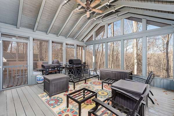 Beautiful furnished custom home with guest house in the desirable Star Point Village. In a short golf cart ride you can be at the marina! Property features a welcoming front porch with spacious screened in porches on the side and back of the property. The open kitchen and living room with vaulted ceilings provide ample space for interacting with family and guests. The main floor features 2 bedrooms and 2 baths. The lower level has a family room along with laundry room, bathroom, an additional bedroom, another room ideal for an office or sleeping room, and storage room. The furnished guest house with stamped concrete flooring has large open living room and kitchen, along with 2 sleeping rooms, and bathroom. Relax by the outdoor firepit after a day on beautiful Dale Hollow Lake. The guest house would be a perfect income producing. NEW ROOF AND HVAC installed July 2025!