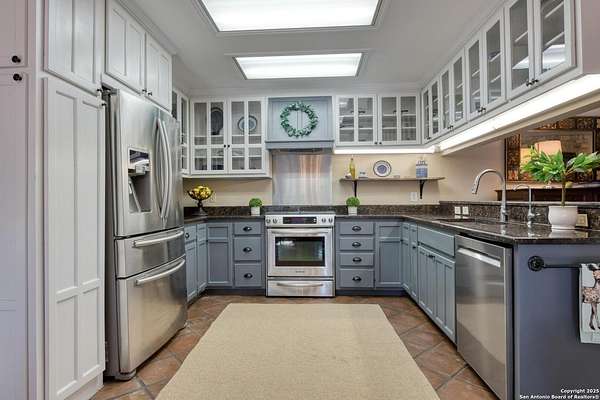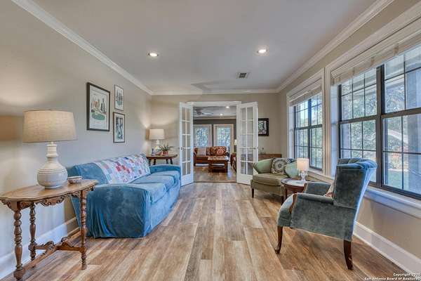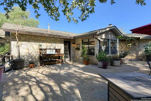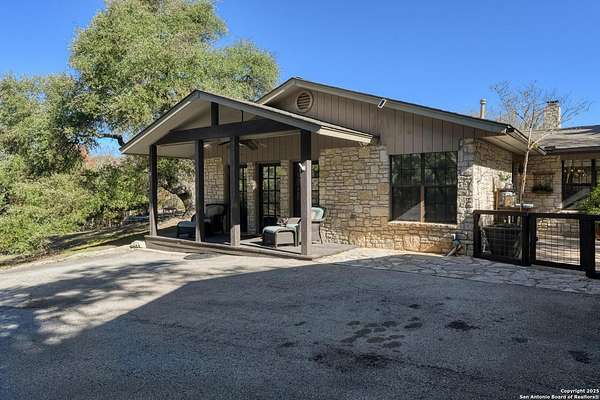 Discover your own private retreat on 3.43 acres. This single story home offers 4 bedrooms and two full baths in a layout designed for easy living. The heart of the home is the light filled kitchen, where an eat in breakfast room with abundant natural light from the 3 sides of windows that one can enjoy the beautiful patio area & outside. Solid countertops, stainless steel appliances, glass cabinetry to showcase your best dinnerware, and a gas range. Step into the living room, where a wood burning fireplace with a custom mesquite wood mantle creates a focal point for cozy evenings. The family room features built in shelving and floods with natural light from French glass doors that open to a side covered patio. A separate dining area near the entry offers flexibility for formal meals or additional living space. The owner's suite is a peaceful retreat with a walk in closet and a full bath featuring a large skylight. Outdoors, extensive flagstone patios invite al fresco dining, quiet relaxation or gatherings. The detached two car garage includes an adjacent carport for extra parking or storage. A 3030 metal building expands the possibilities-ideal as a workshop, studio or additional storage. The property has a water well with reservoir (2600 gallons). Controlled access gate with remote. Whether you're enjoying the spacious interiors, exploring the acreage in search of fossils, or simply soaking in the serenity of the land, this property offers a rare blend of comfort and adventure for those seeking a true country lifestyle.