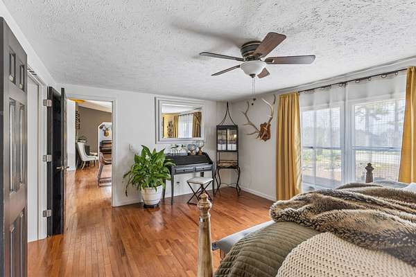 The property also boasts a stocked pond, natural springs, and a year-round creek. Recreational trails wind throughout the property, inviting you to explore and experience the expansive acreage and the abundant wildlife that call this land home.