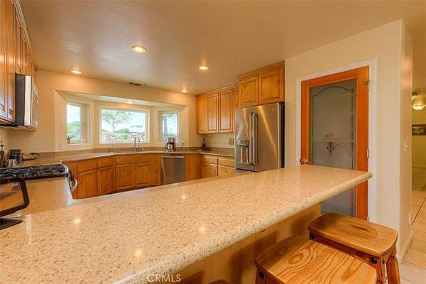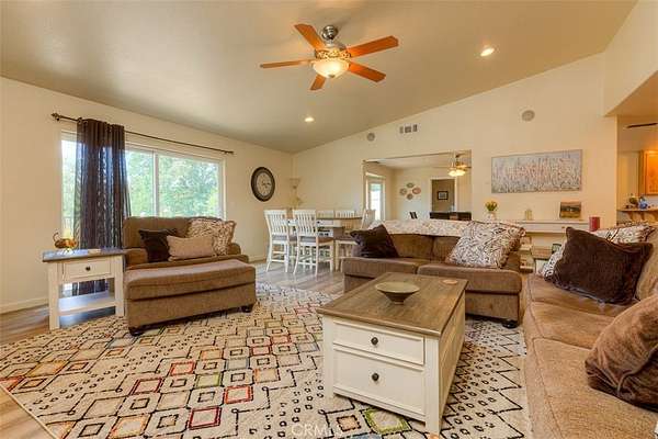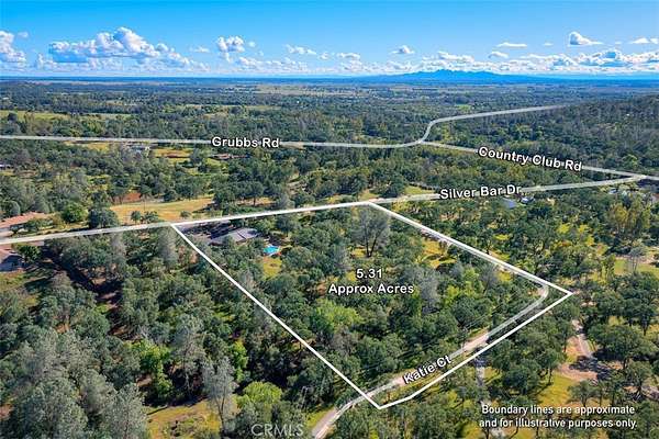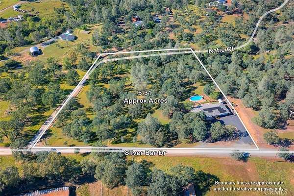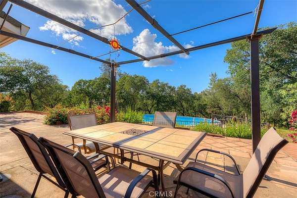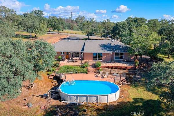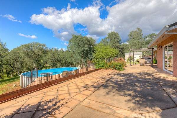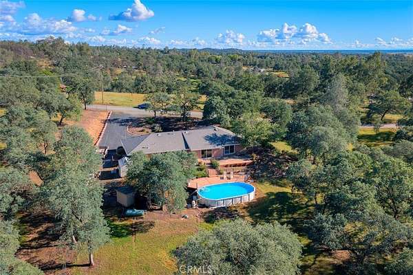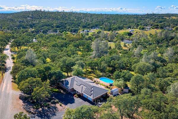 HOME SWEET HOME! This lovely custom home on approx. 5.31 acres, was built in 2005, offers all the peace & serenity COUNTRY life has to offer! From the circle drive find the 2245 sq ft, 3 Bedrooms/2.5 bath home! Enter into the tiled foyer, and find the spacious living room, w/high ceilings, recessed lighting, cozy stove in corner, and open views of patio & pool! The kitchen & dining areas have bay windows also bringing in the outside views! Kitchen boasts custom cabinets & modern counters, stainless appliances, tile flooring, & a pantry! Formal dining area separated by breakfast bar! Off the kitchen find a separate bright, laundry room, w/plenty of storage, a folding counter, utility sink & exit to outside. Down the tiled hall find the 1/2 bath, convenient for guests, & another full bath, close to the bedrooms w/mirrored closet doors, & carpet. Primary bedroom is spacious with slider out to patio above pool! Primary bath offers jet tub, separate shower, dual sinks, custom tiled vanity, plenty of storage! Outside, backyard find the above ground pool, patio & decking, perfect for entertaining, & overlooking the acreage & manicured oaks! Bring your critters to enjoy this space! The eaves have been enclosed & vented, rain gutters all around. Attached garage! Owned solar benefits your energy savings! What an amazing property, with plenty of room to park your RVs, rural, yet minutes from the Lake & town, & all the beauty & recreation Oroville has to offer! Call 530-693-0690, LAURALYN A LAMBERT, CALDRE Lic#01415659, TABLE MOUNTAIN REALTY, to make an appt to see this awesome place that you will call HOME!