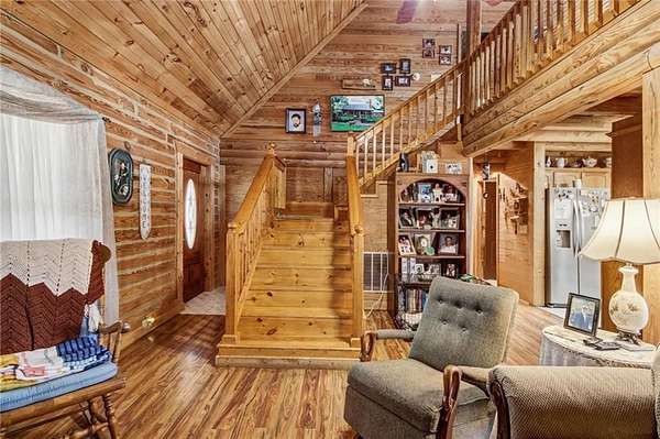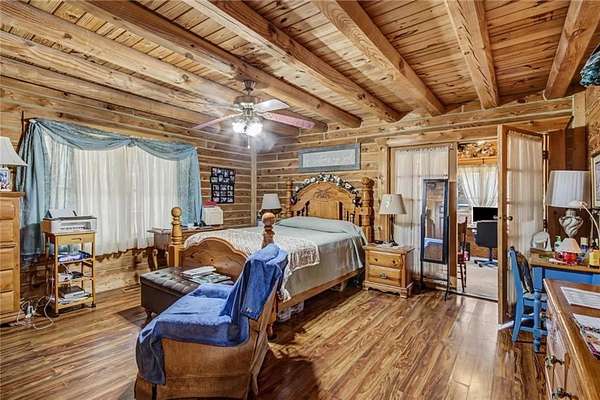 Welcome to country living. This home is located on 7.9 acres of land. Landscaped with fruit trees and a winery. The home has 4 bedrooms and 3.5 bathrooms. The home has a in-law suite attached to the home. There is a separate 2 bedroom and 2 bathroom home build on the property in 2025. A creek runs through the latter half of the property and it dead-ends into community land, not to be used. Log cabin styled, custom built, fenced back yard, and storage structure that only needs electric ran to pole. Come at see the country side of Georgia. x x Beautiful 7.9-acre country property in Whitesburg featuring a custom log cabin-style home with 4 bedrooms and 3.5 bathrooms and an attached in-law suite. The property also includes a separate 2-bedroom, 2-bath home built in 2025, perfect for guests or rental potential. Landscaped with fruit trees and a small winery, plus a creek running through the back of the property that borders community land for added privacy. Fenced backyard and storage building with power
