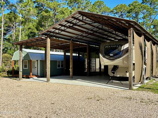 Looking for the ultimate home base between the bays and the Gulf? This unique property offers the perfect blend of country seclusion and coastal convenience. Whether you're looking for a weekend getaway or a permanent site to park your rig, this lot is fully equipped and ready for adventure. Ready Pole Barn: Includes a spacious screened-in porch for bug-free evenings and an outdoor shower to rinse off the salt and sand. Convenience On-Site: Equipped with a sturdy metal storage building for all your gear. An additional outbuilding on the property is perfect for a workshop or a cozy small loft apartment. Bonus: 2020 Jayco Pinnacle 36SSWS Camper to be sold with the property at an additional price of $35,000! Just minutes from the Indian Pass boat launch, making it a breeze to get on the water. Experience the quiet peace of the country while staying connected to everything the Forgotten Coast has to offer. Don't miss your chance to own a slice of paradise in one of the most sought-after areas of the panhandle!