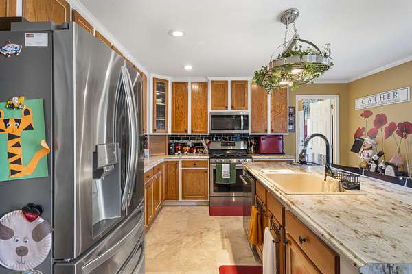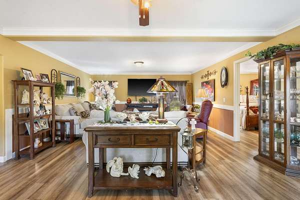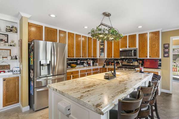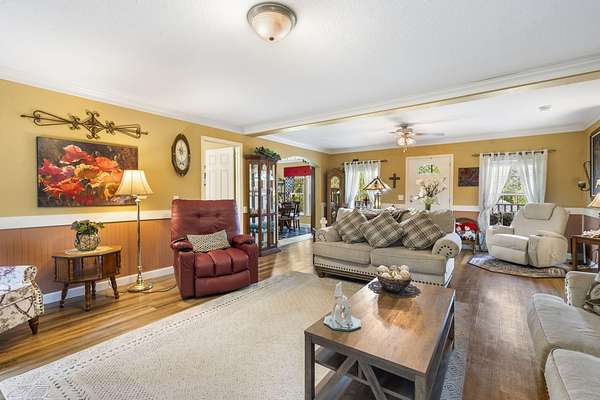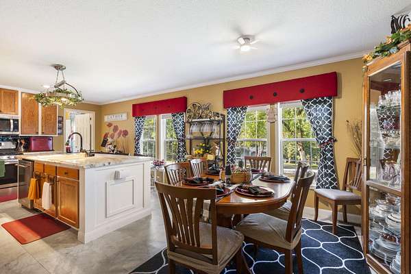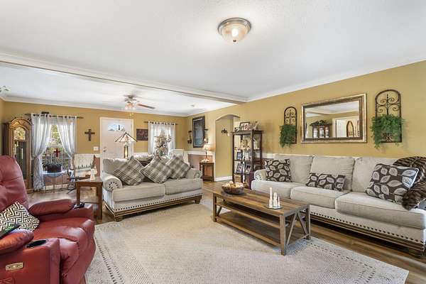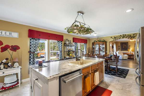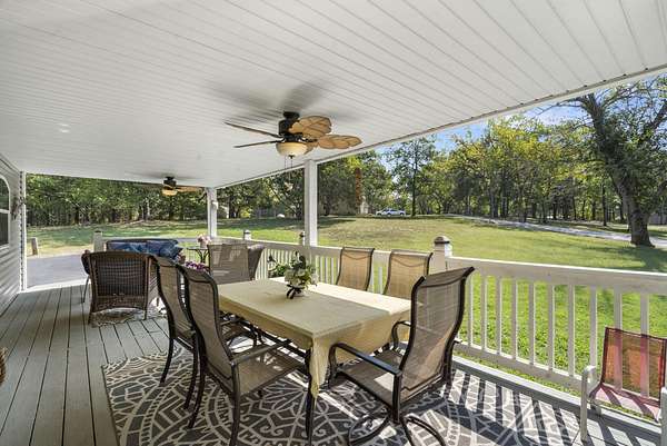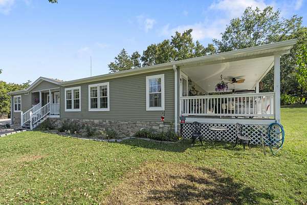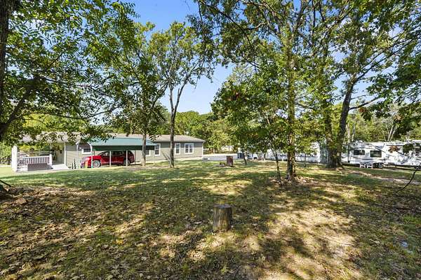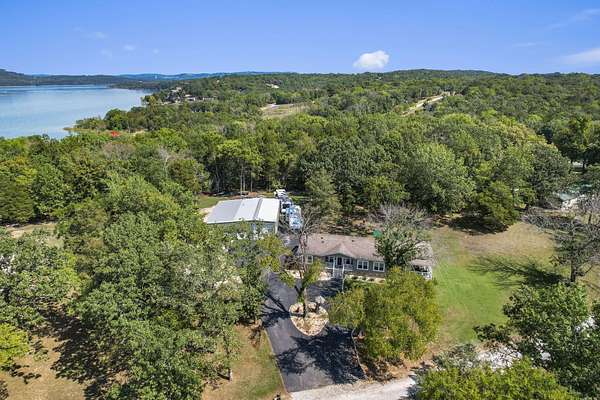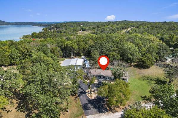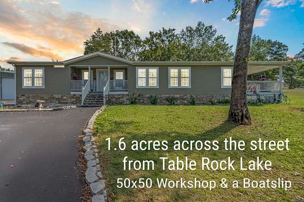 Welcome to lake living! This spacious 3-bedroom, 2-bath home located on 1.6 acres across the street from Table Rock Lake is designed for both comfort and convenience. The open floor plan makes entertaining a breeze, featuring a large kitchen with an oversized island and plenty of storage. The primary suite offers two walk-in closets and a spacious bathroom with a walk-in shower and large soaking tub, creating your own private retreat. Each additional bedroom also has a walk-in closet, giving you plenty of storage throughout the home. Step outside to a large covered porch where you can relax, unwind, and take in the peaceful surroundings with glimpses of the lake. The property also includes a generous detached outbuilding with a workshop that is partially heated and cooled, making it ideal for hobbies, projects, or storage. Attached to the workshop is a partially finished apartment with its own bathroom--perfect for extended family and guests. RV hookups are already in place for even more flexibility. For those who love time on the water, a 10x24 boat slip is available for purchase just a short golf cart ride away. This home checks all the boxes for full-time living, a vacation retreat, or a combination of both!