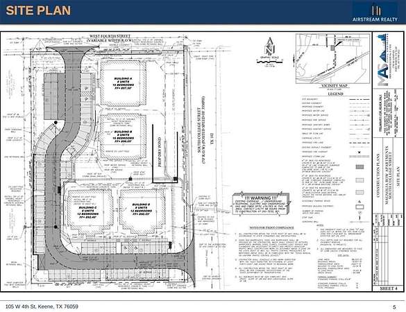 - Zoning Flexibility (Keene City Limits): City approved 32-unit APTS;MF civil plans (56 bedrooms) - ownership is flexible and willing to pay or credit for permit re-approval. Full engineering plans for 32 units are available upon request